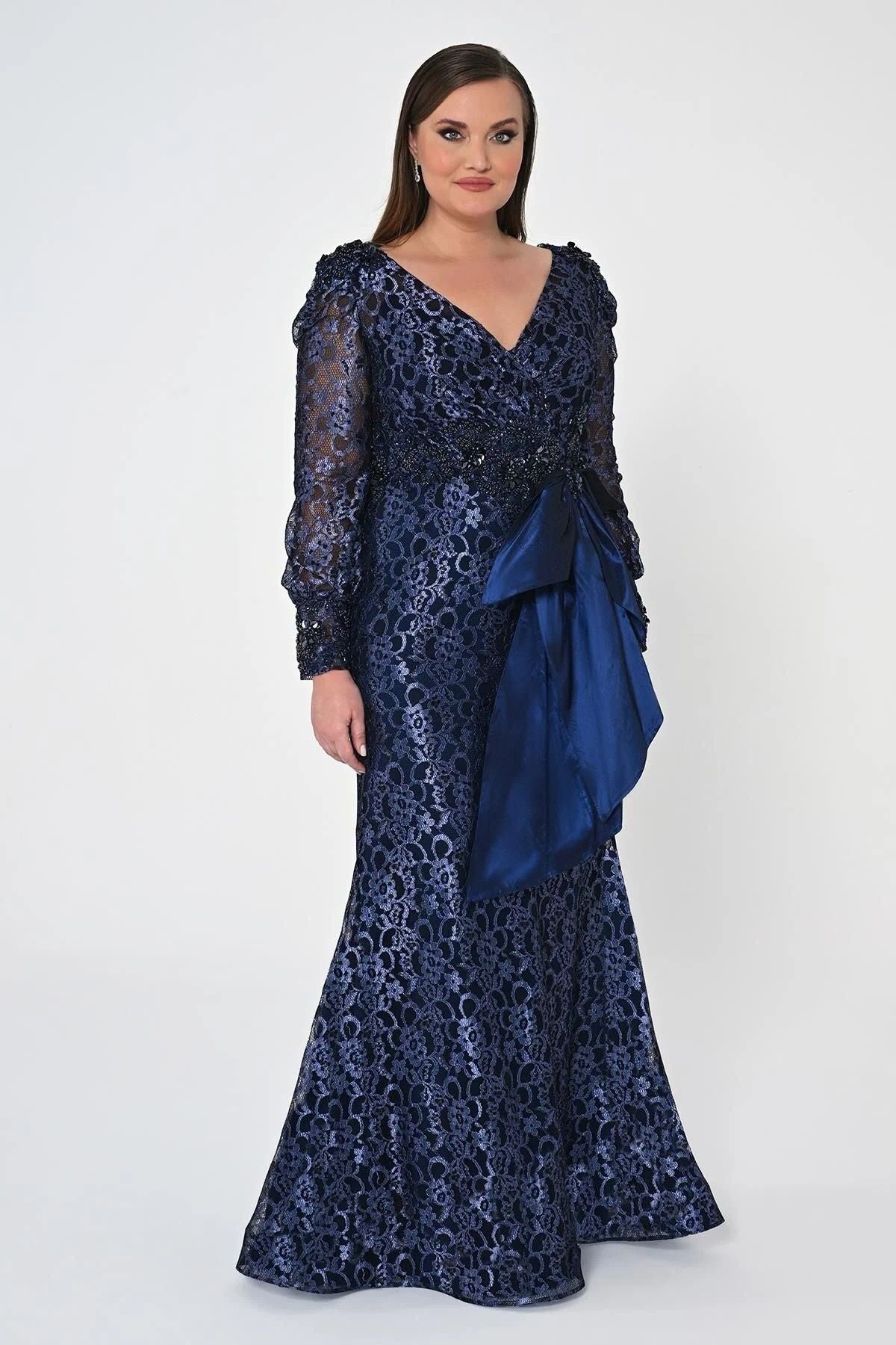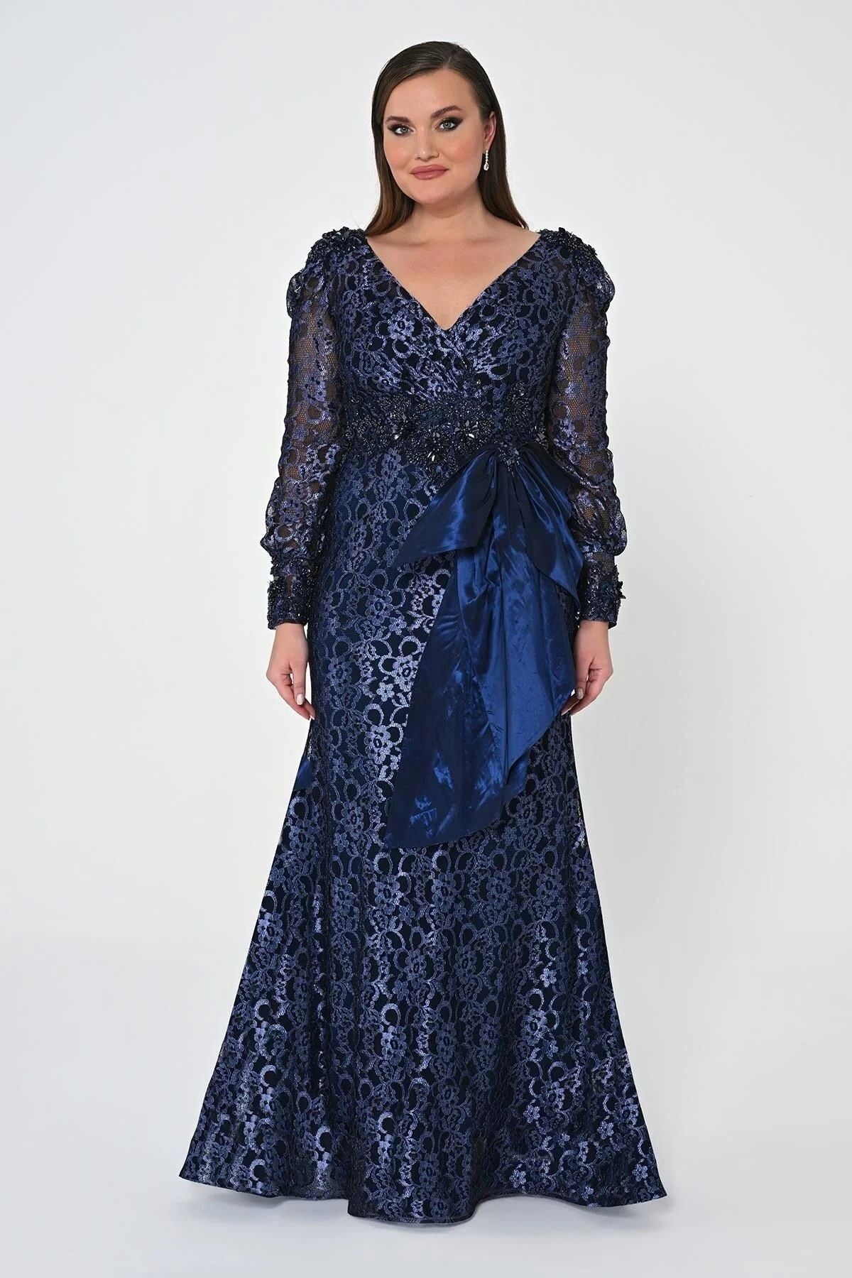 Ürün Özellikleri:; Marka : Alfebeta; Model : Maxi Elbise; Sezon : İlkbahar/Yaz; Desen :Beli İşlemeli; Materyal : % 100 Polyester; Yaka Bilgisi : V Yaka; Kol Bilgisi : Uzun Kollu; Kalıp Bilgisi : Büyük Beden; Detay : -Maxi Boy uzunluk; Model ölçüsü: Boy: 175 cm - Göğüs: 106 cm - Bel:90 cm - Kalça: 112 cm;