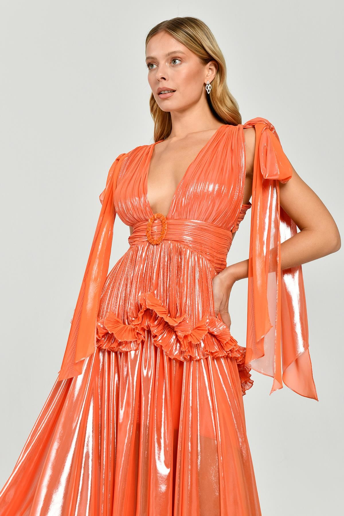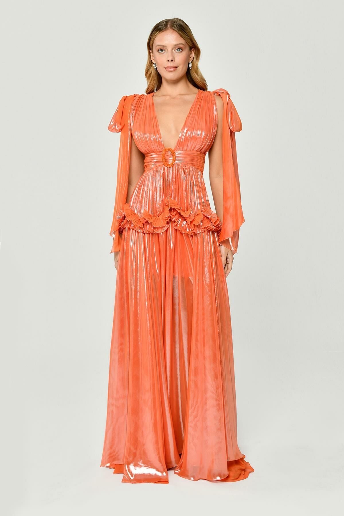 Model ölçüsü: Boy: 176 cm - Göğüs: 86 cm - Bel:60 cm - Kalça: 92 cm; Kumaş...