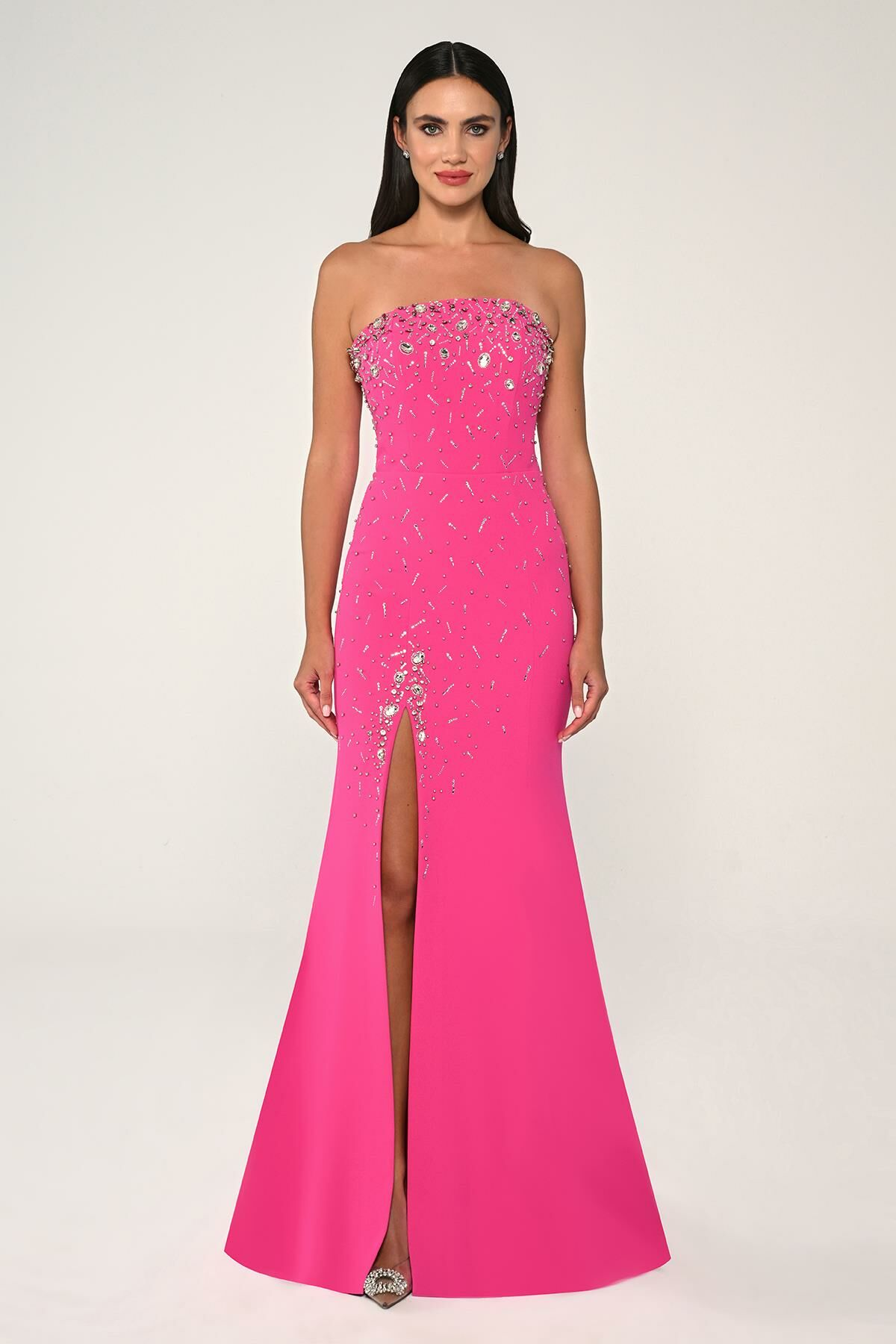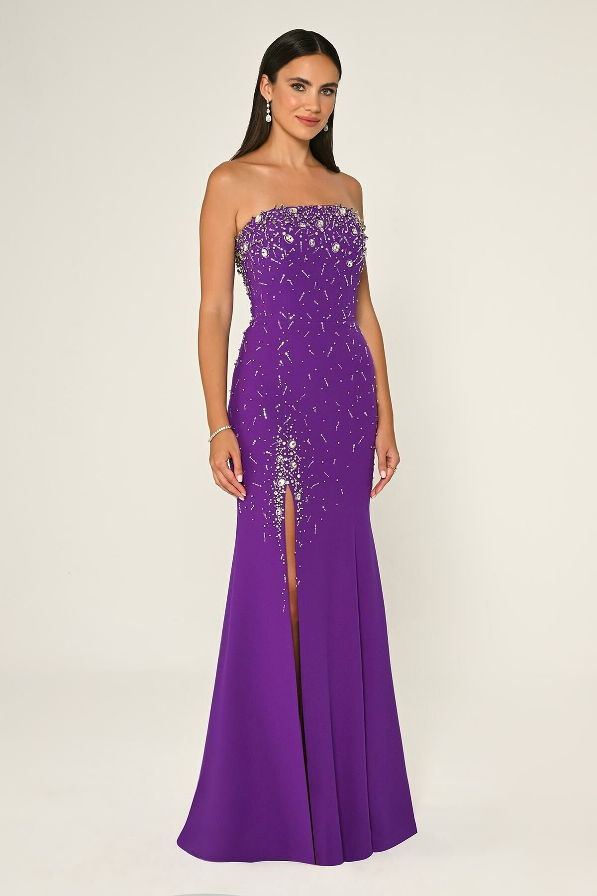 Straplez Taş İşlemeli Krep Uzun Abiye Elbise Alfa Beta