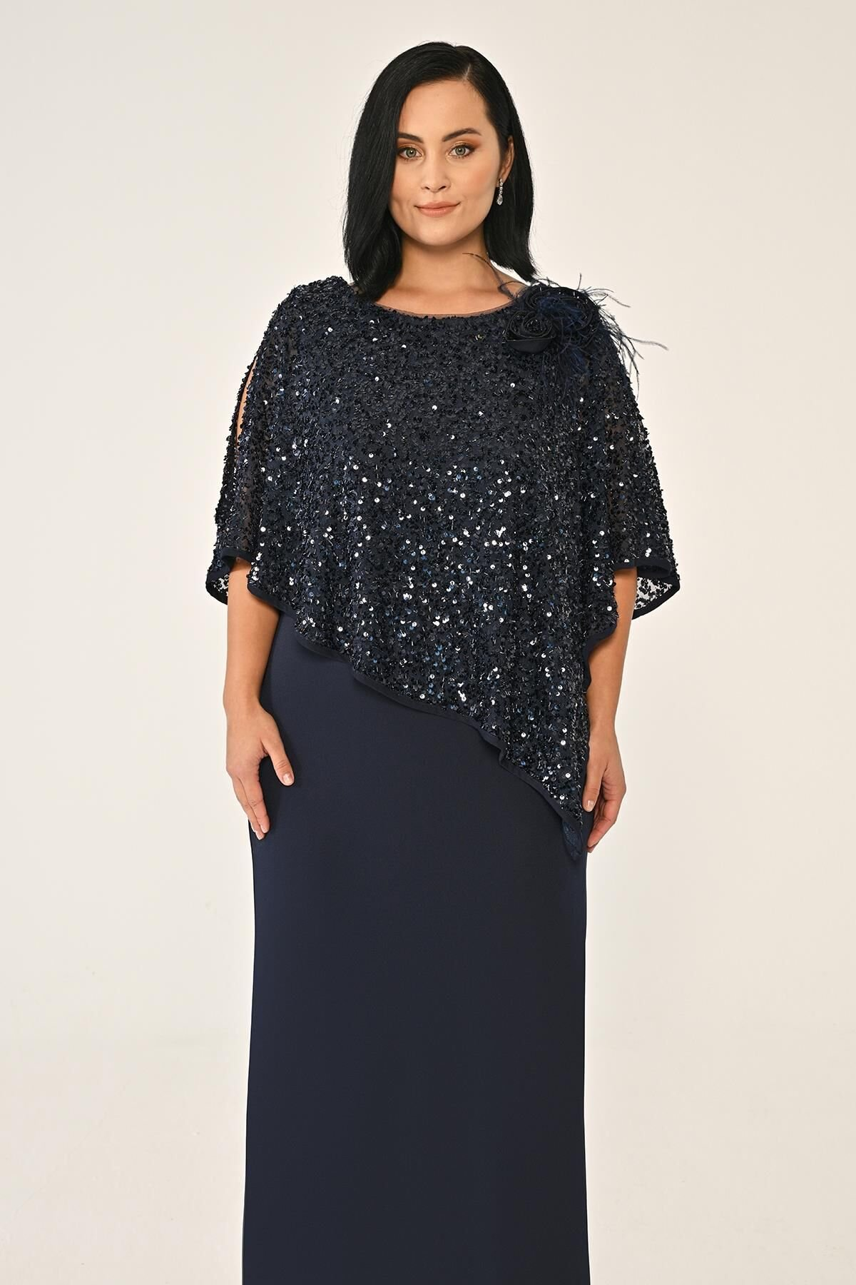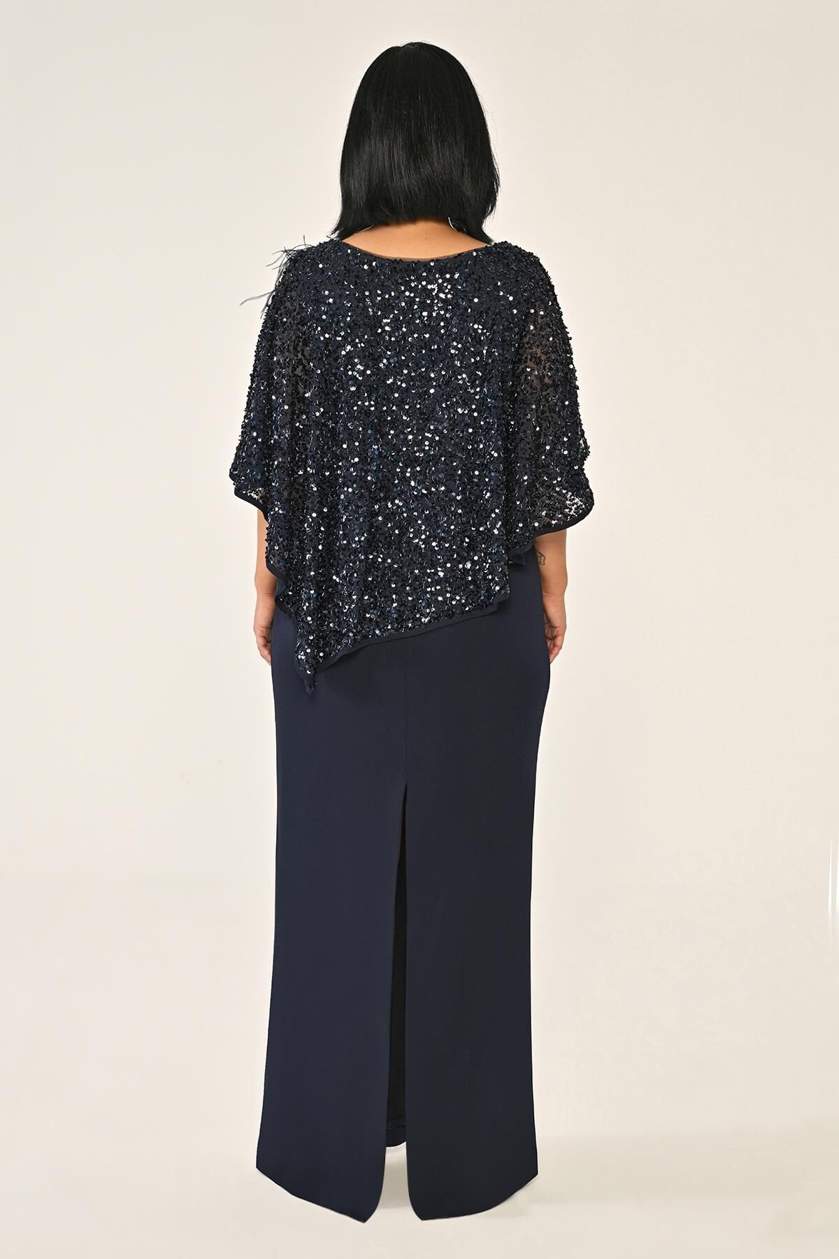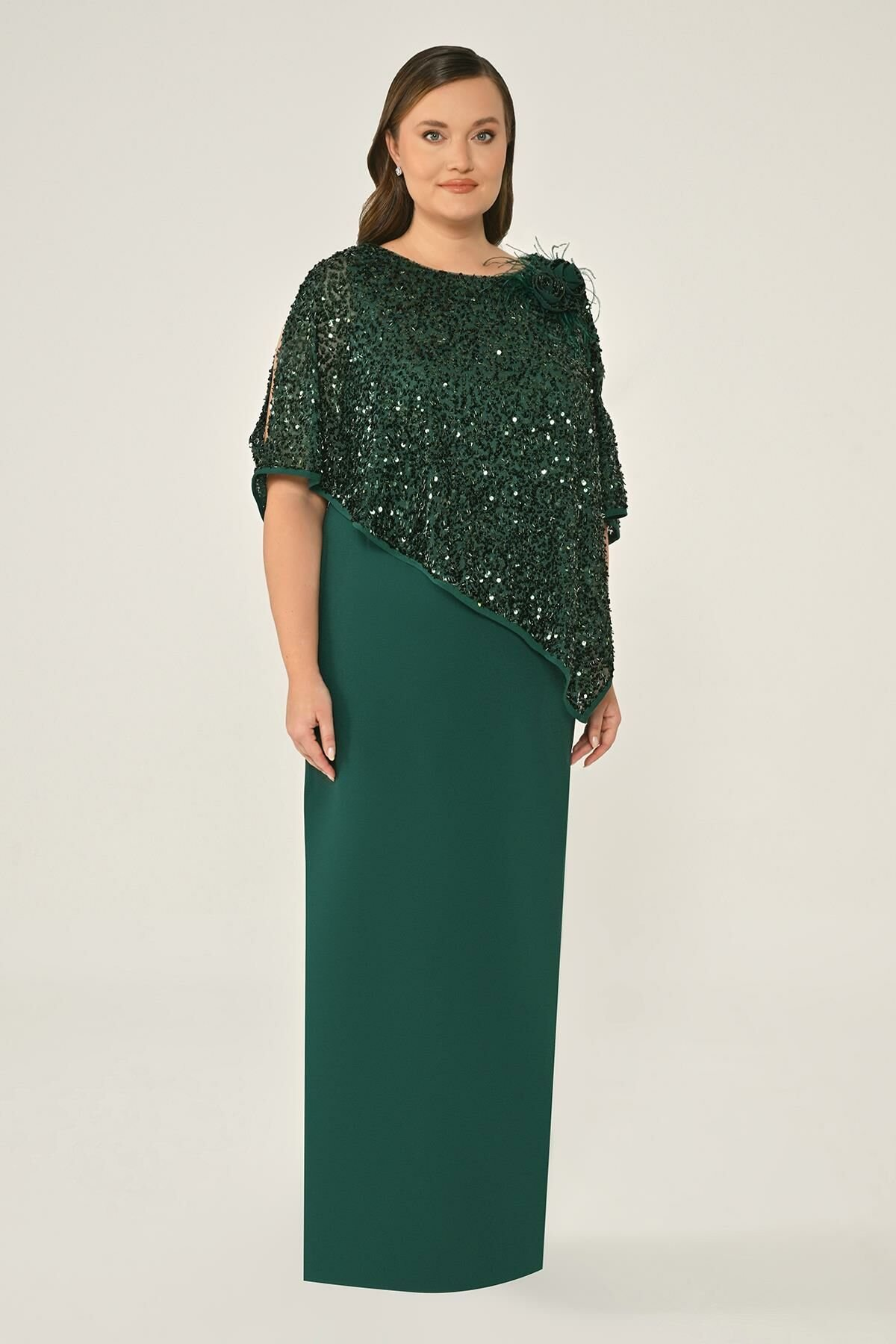 Payet Şallı Krep Uzun Abiye Elbise Alfa Beta