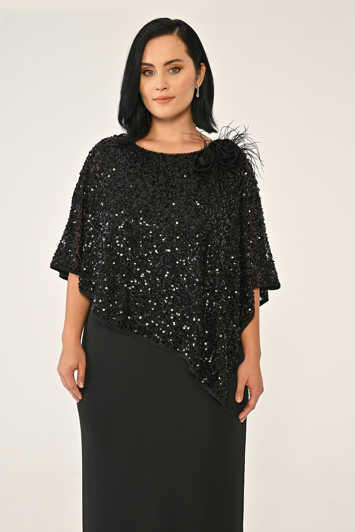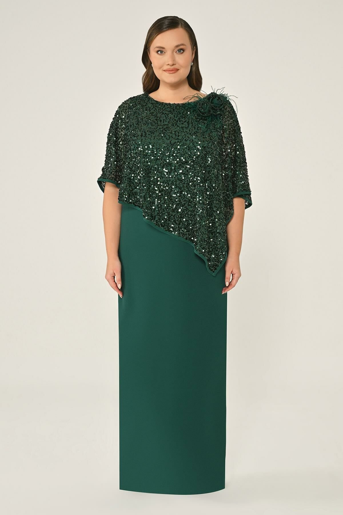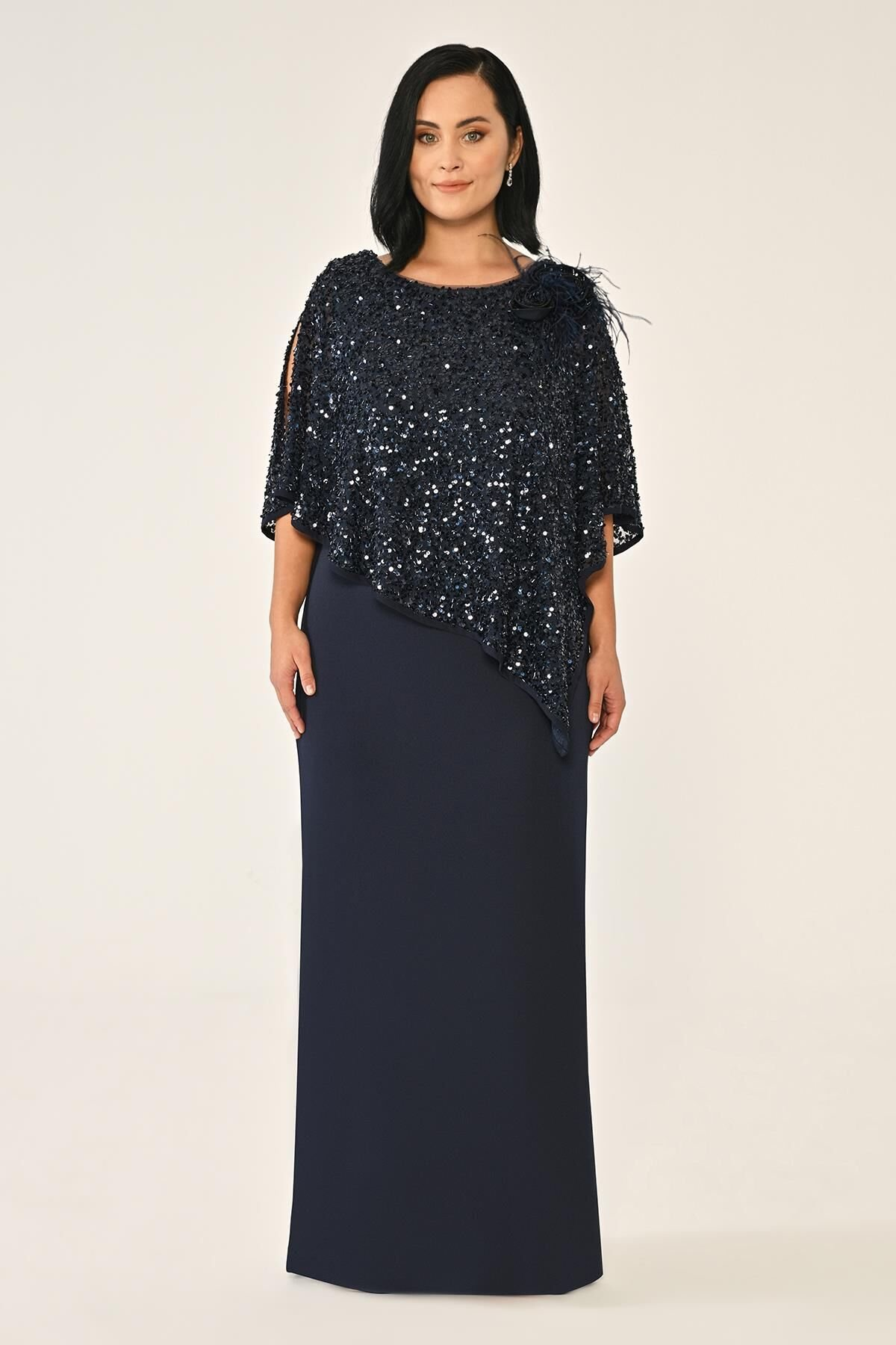Payet Şallı Krep Uzun Abiye Elbise Alfa Beta