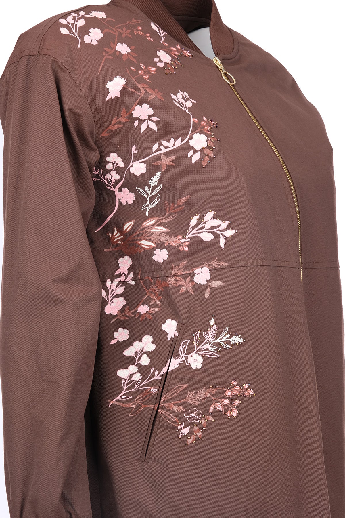 Baskılı Fermuar Detaylı Cepli Ceket, ön fermuar kullanımı ve modern baskısıyla günlük stilinize hareket katar; cepleri pratiklik sağlar.