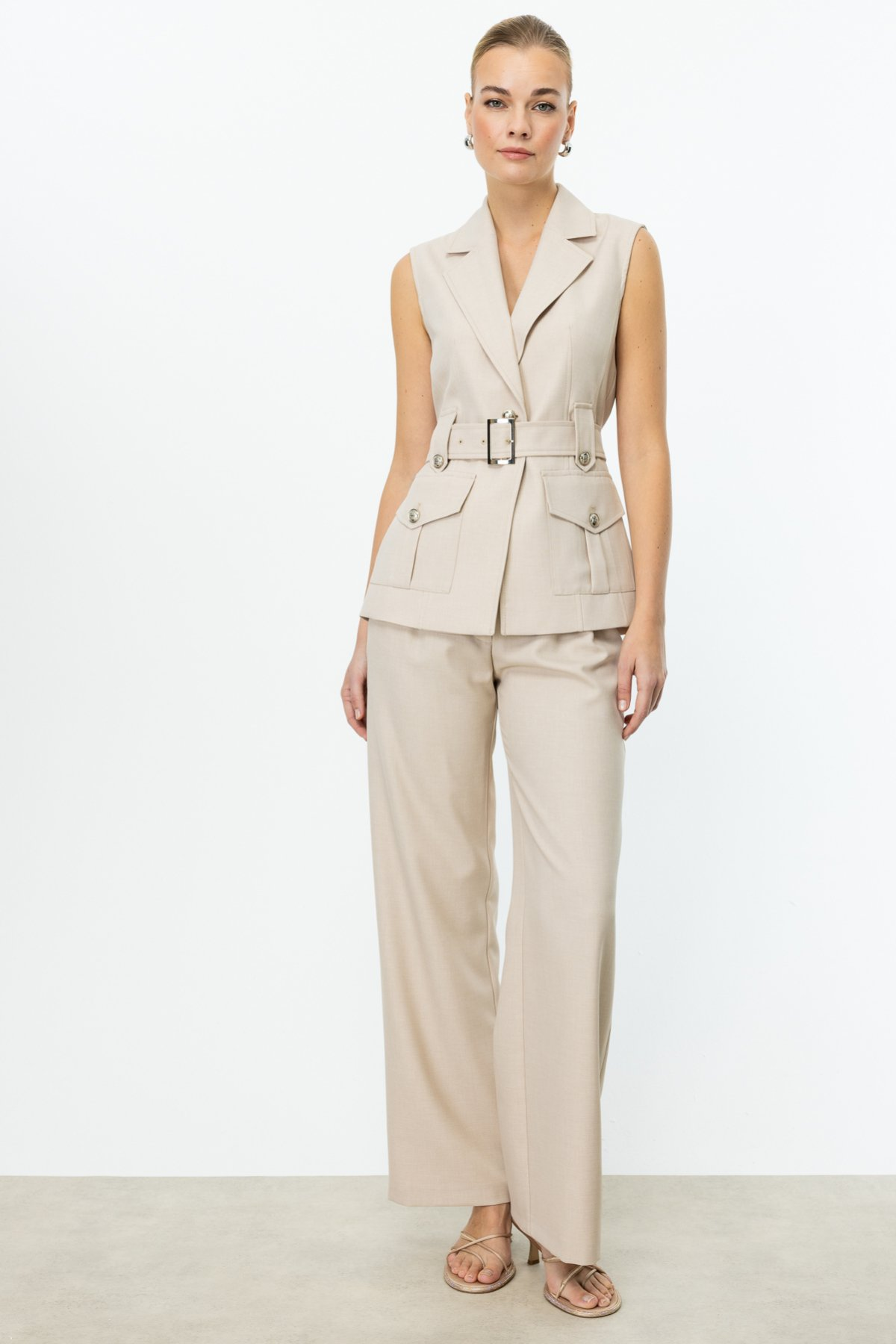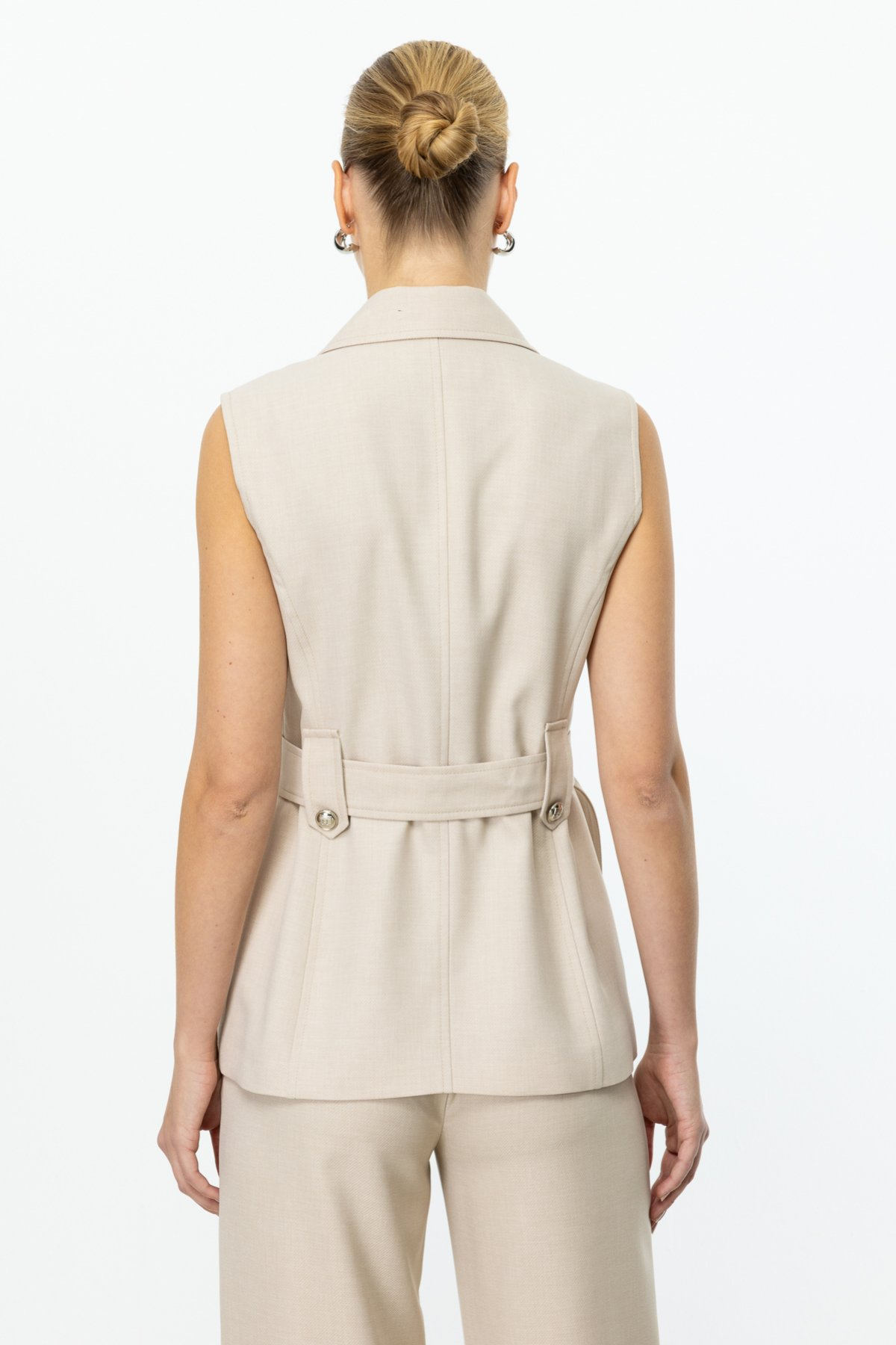 Ürün Özellikleri:Beli kemerli, kapak cepli, kolsuz, düğme kapamalı, astarlı