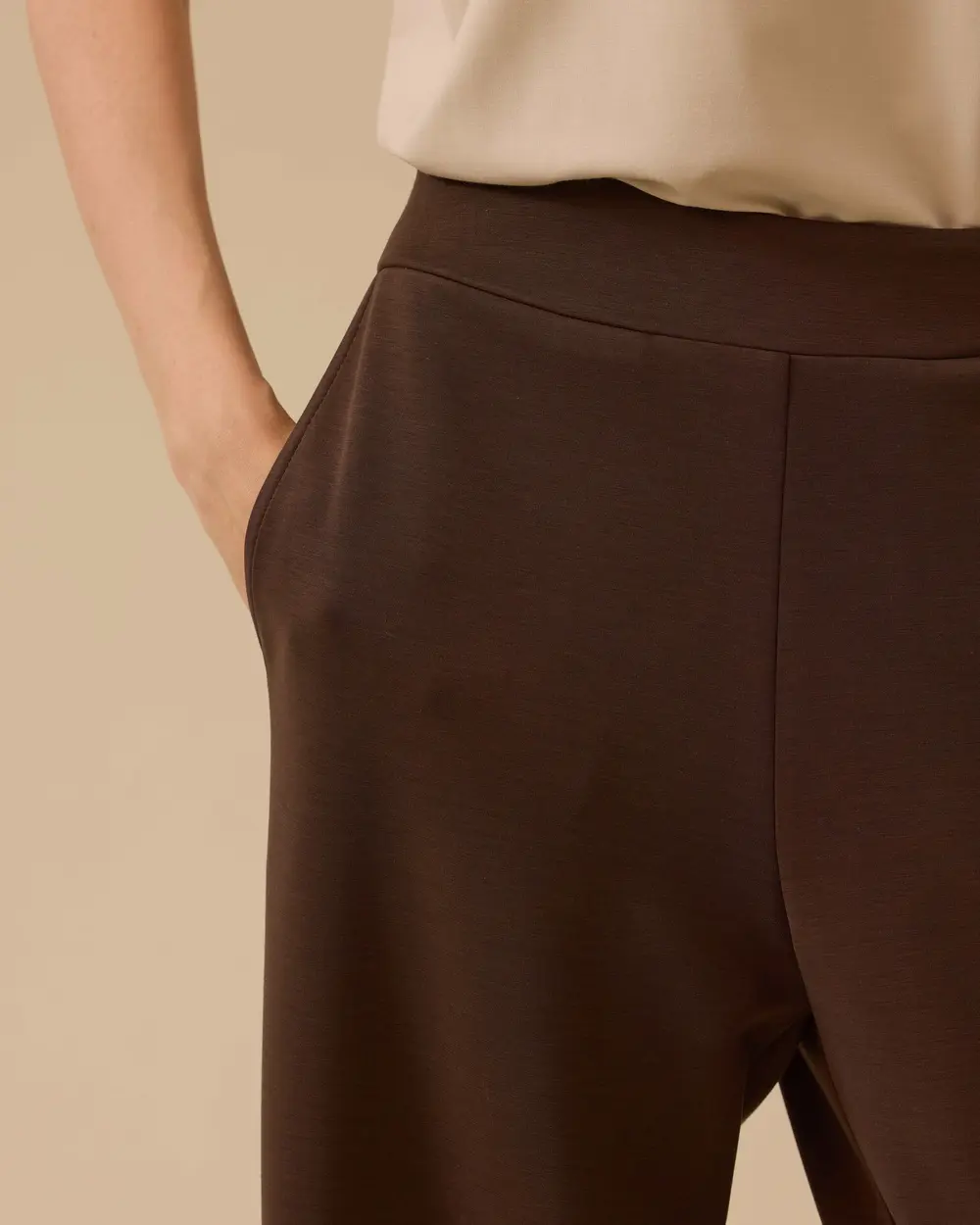 Bol Paça Cepli Tam Boy Pantolon, akıcı dokusu ve rahat kalıbıyla özgür hareket sağlar; cepler pratiklik sunar.