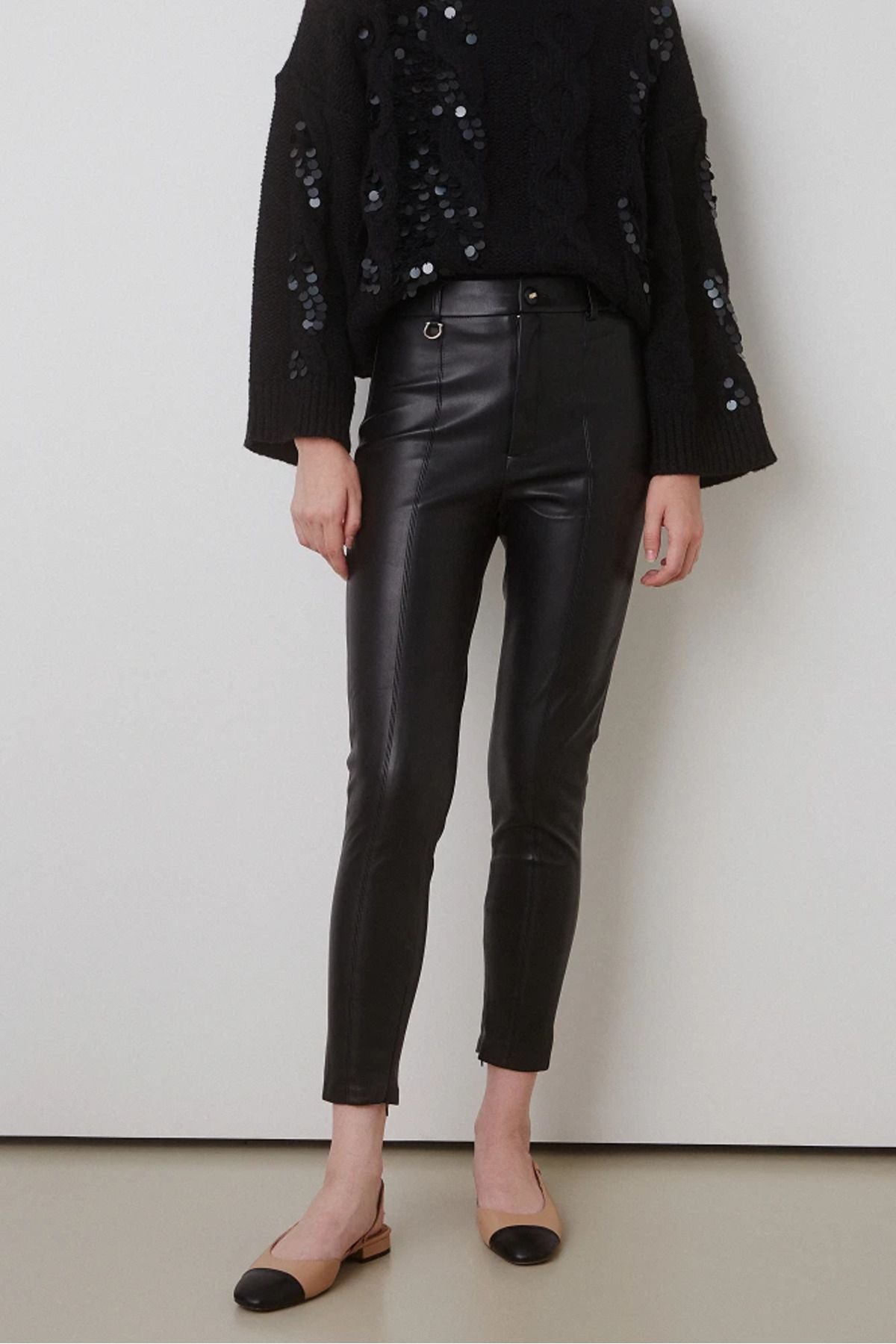 ÜRÜN DETAYLARI: Yüksek bel tayt, deri görünümlü, önü fermuar kapamalı, normal kesim; KUMAŞ VE BAKIM TALİMATLARI:; POLİÜRETAN...