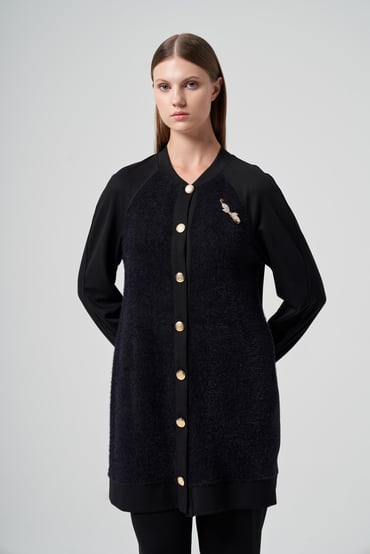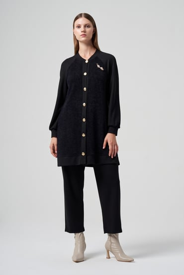Asilay Takım Kesim: Tam Kalıp Tarz: Klasik Boy: Üst: 95 Cm Toplam: 97 Cm Reglan Kol, Broş Aksesuarlı Ön Beden Kapaması Düğmeli Beli Lastikli Pantolonlu Takım