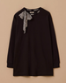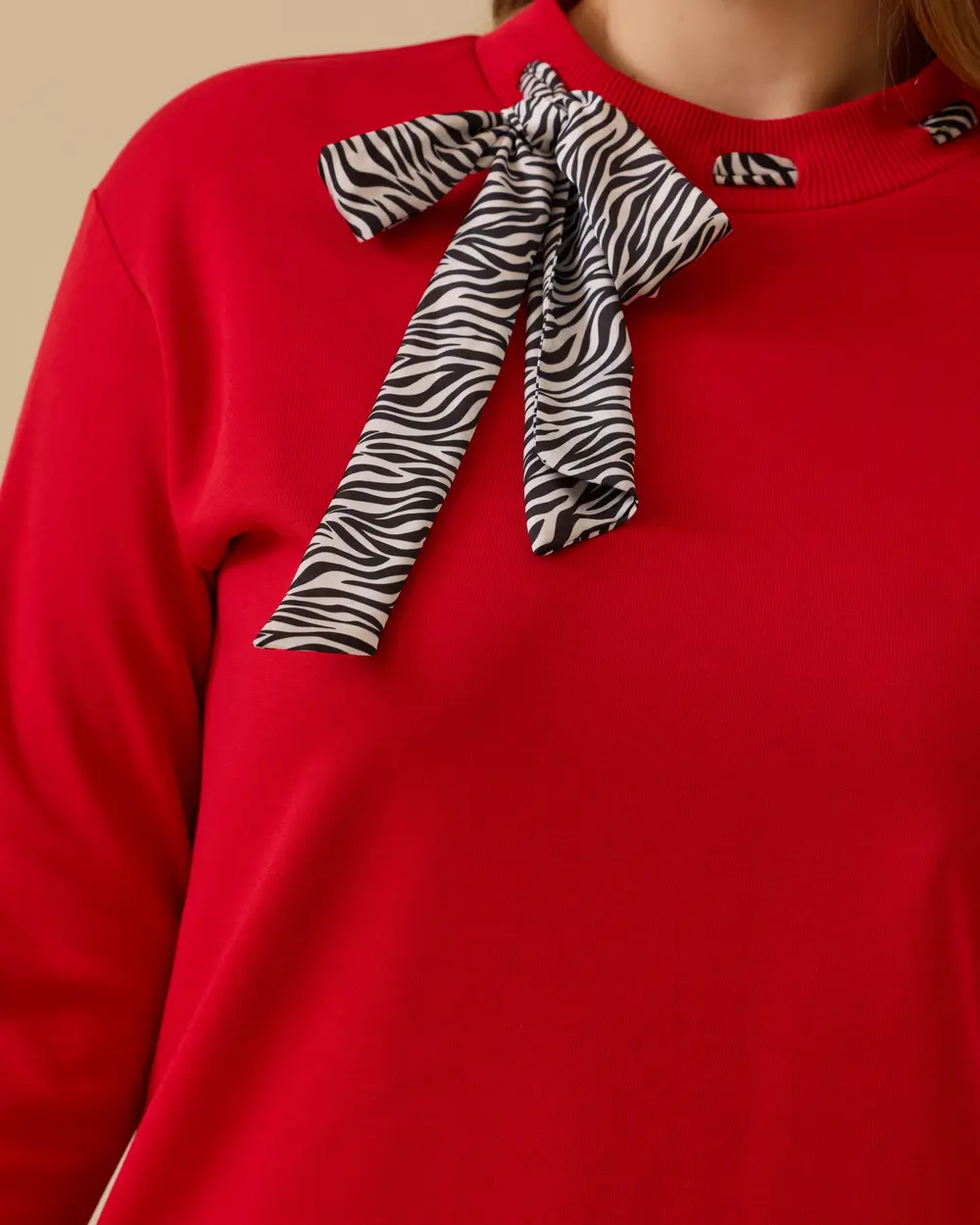 Büyük Beden Fular Yakalı Sweatshirt, zarif fular detayı ve rahat kalıbıyla şık ve konforlu bir stil sunar.