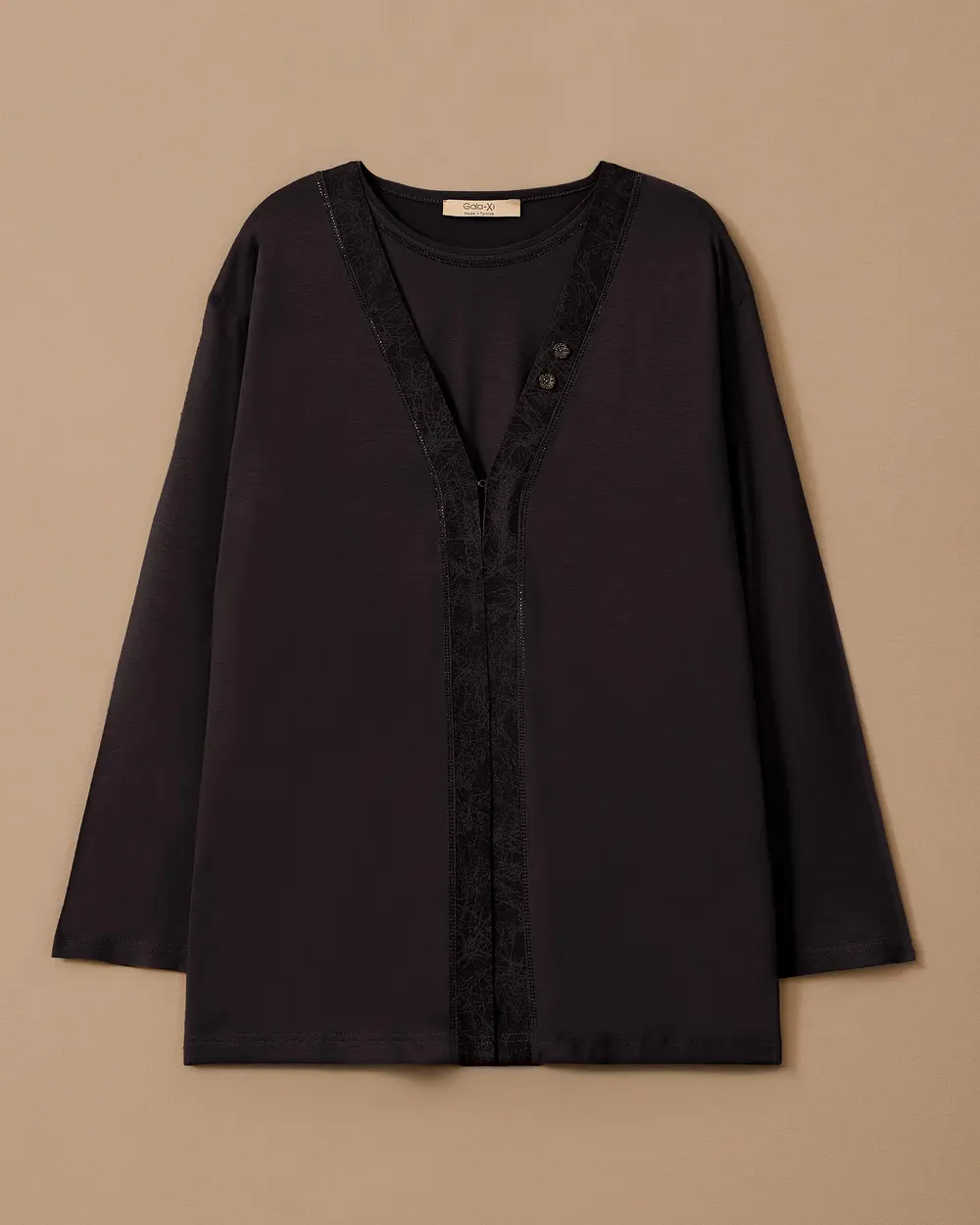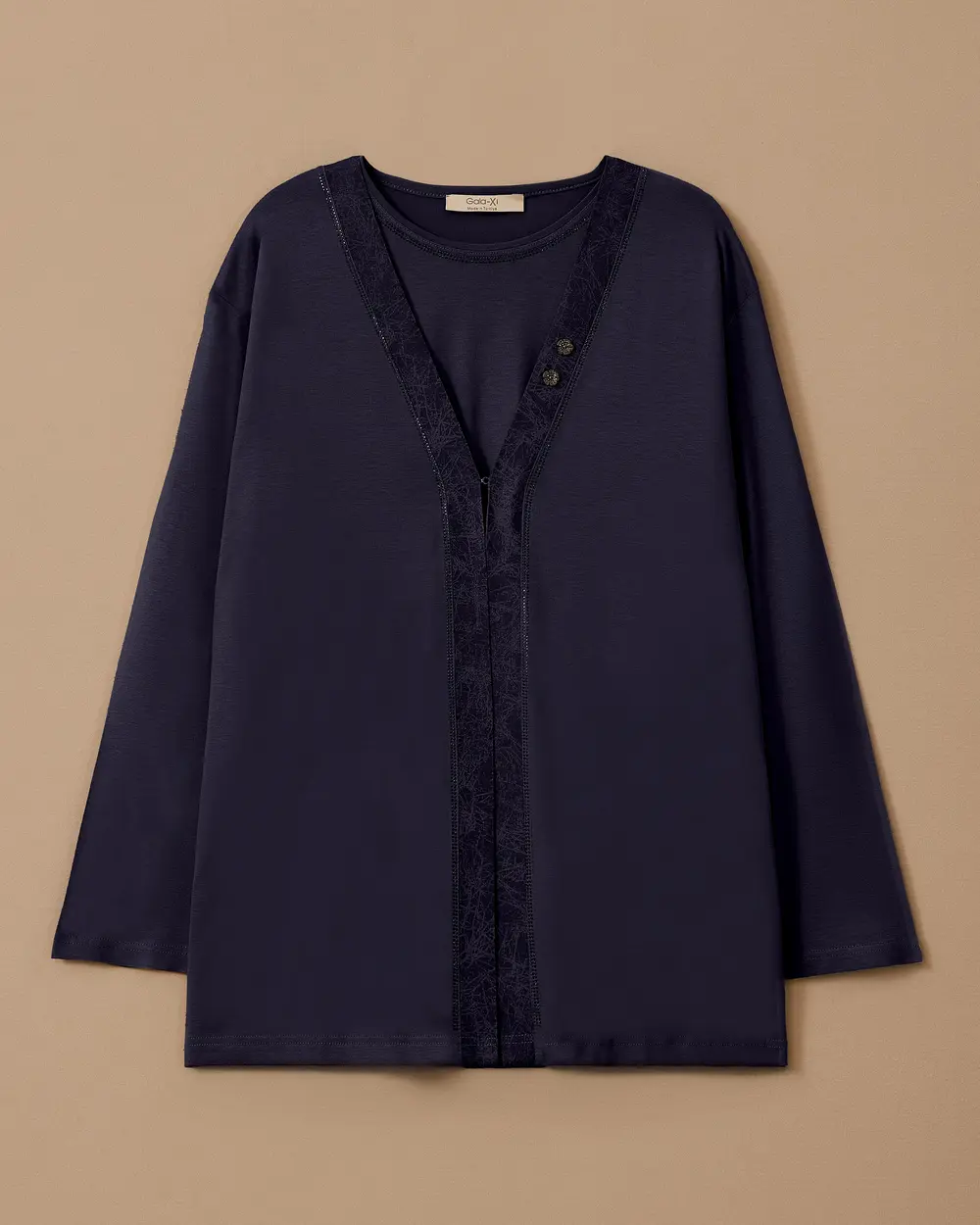 Büyük Beden Hırkalı Takım, iç bluzlu tasarımıyla pratiklik sunar. Şık detaylarla bezenmiş, rahat kesimiyle günlük şıklığınızı tamamlar.