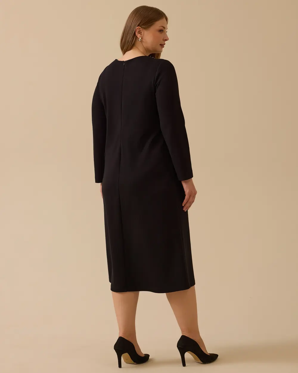 Büyük Beden Taşlı Yaka Detaylı Elbise, zarif tasarımıyla özel davetler için ideal seçimdir.
