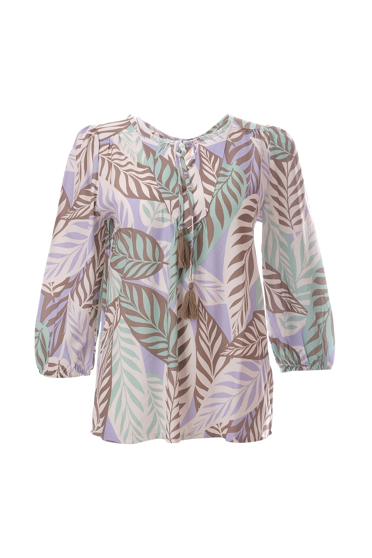 Canel 3/4 Kol Midi Bohemian Bluz - Yaprak Desenli Şifon Bluz