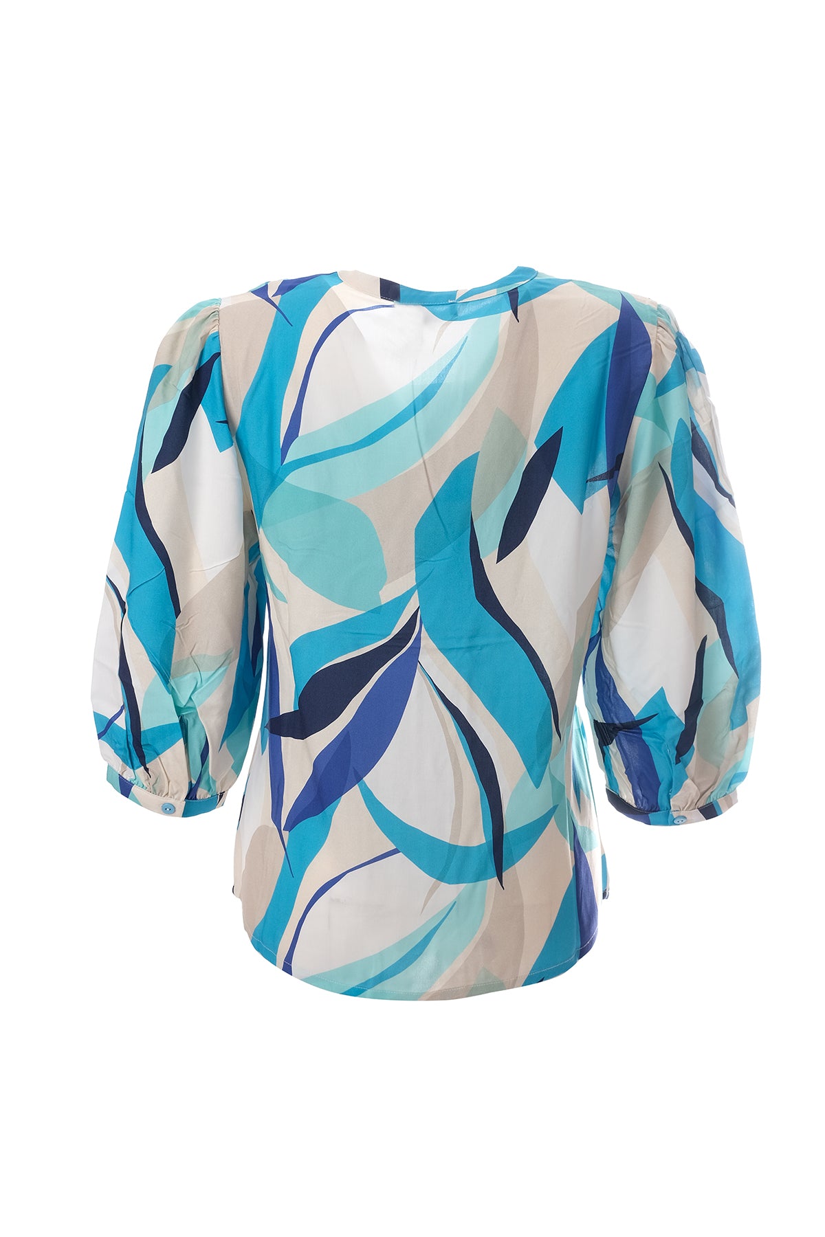 Canel Kadın V Yaka 3/4 Kol Geometrik Desenli Minimalist Bluz