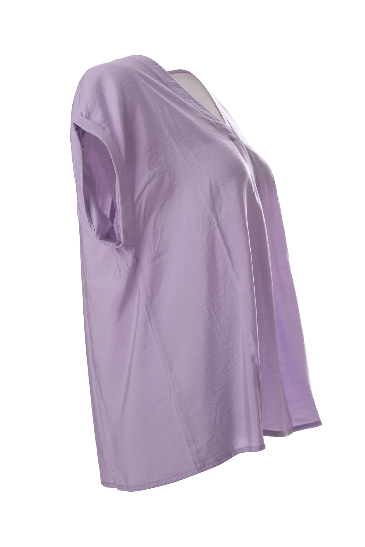 Canel Minimalist V Yaka Kısa Kol Oversize Kadın Bluz