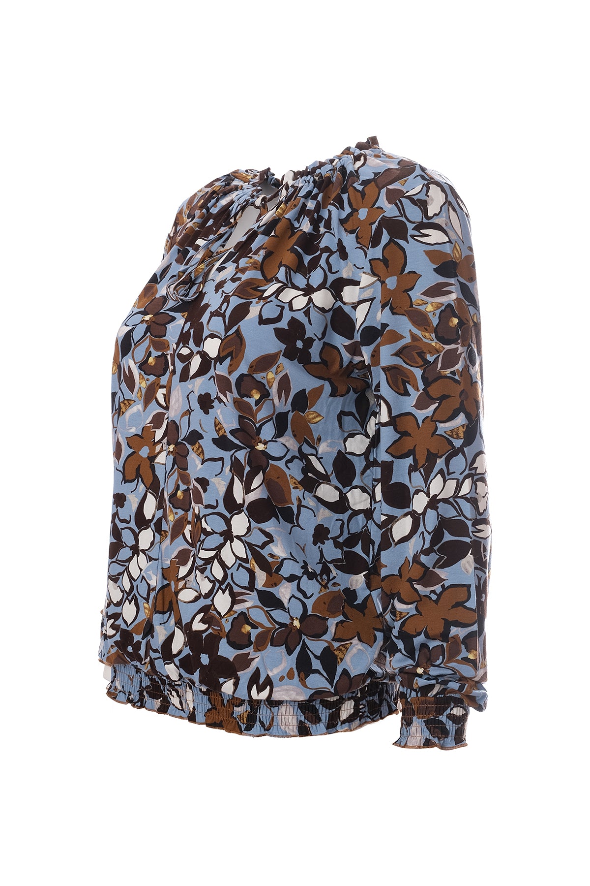 Çiçekli Sıfır Yaka Uzun Kollu Bluz Cnl