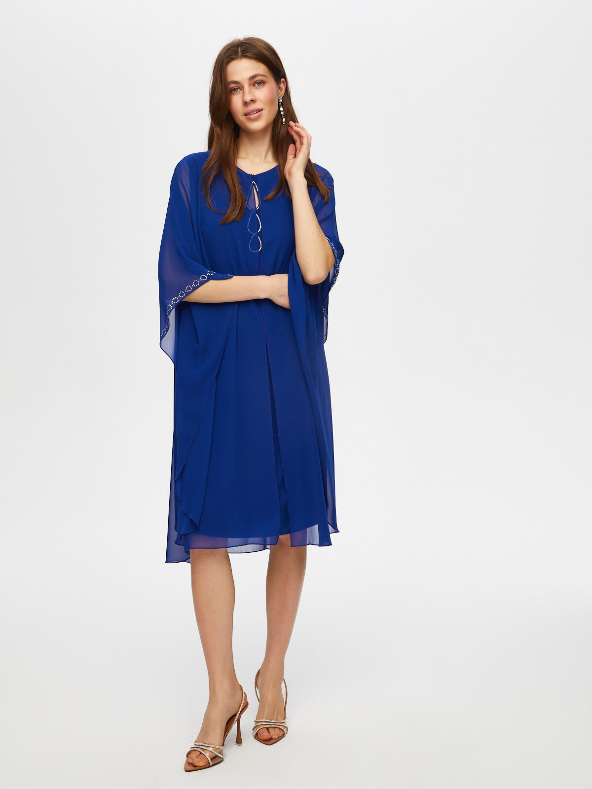 Ürün Adı : Damla Taş Detaylı Şifon Pelerinli Abiye Elbise