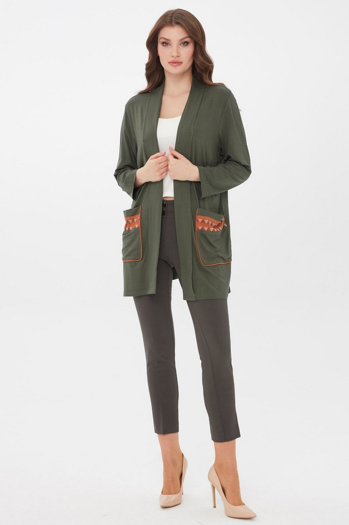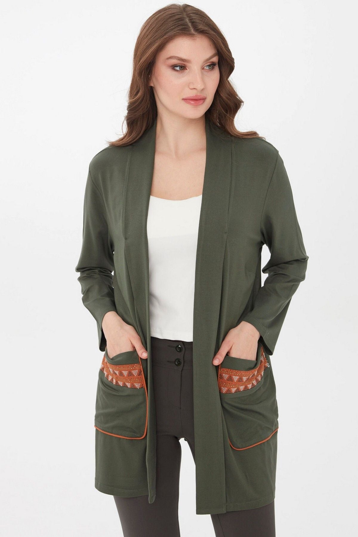 Menşei : Türkiye - Yerli Üretim Manken Ölçüsü: Boy: 1.75 cm / Göğüs: 85 cm / Bel: 61 cm / Kalça:91 cm Modelimiz de ürünün en küçük bedeni giyilmiştir. Desen Bilgisi: Düz Renk Kalıp Bilgisi: Geniş Kalıp Kol Bilgisi: Uzun Kol Materyal : %95 Viskon %5 Elastan Yaka Bilgisi: Şal Yaka
