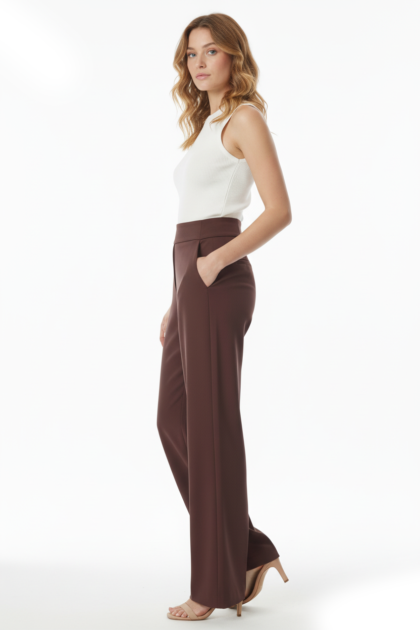 Düz Kesim Tam Boy Pantolon, akıcı dokusu ve rahat kalıbıyla net bir siluet sunar, günlük ve ofis kombinlerine uyum sağlar.