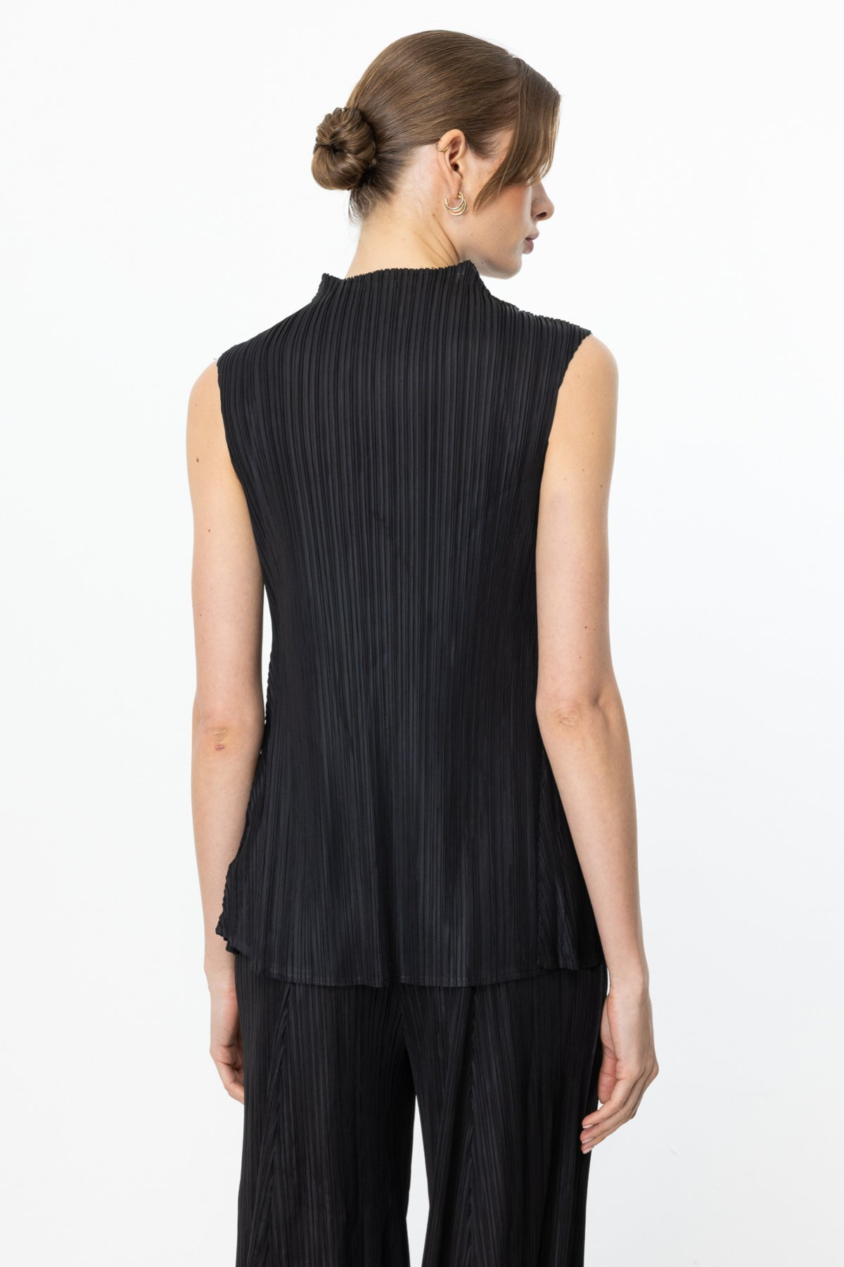 Ekol Akordiyon Kumaş Dik Yaka Bluz