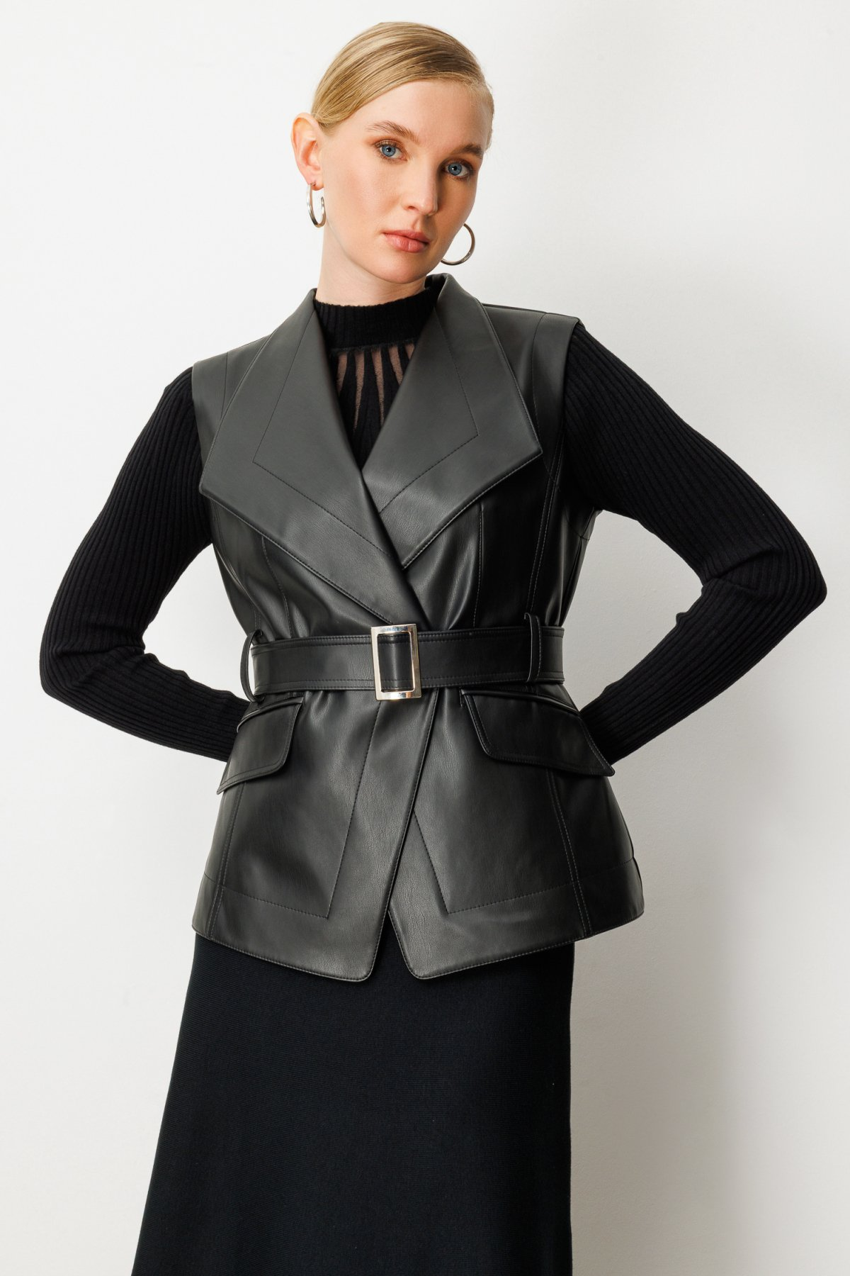 Ekol Beli Kemerli Deri Yelek Ekol