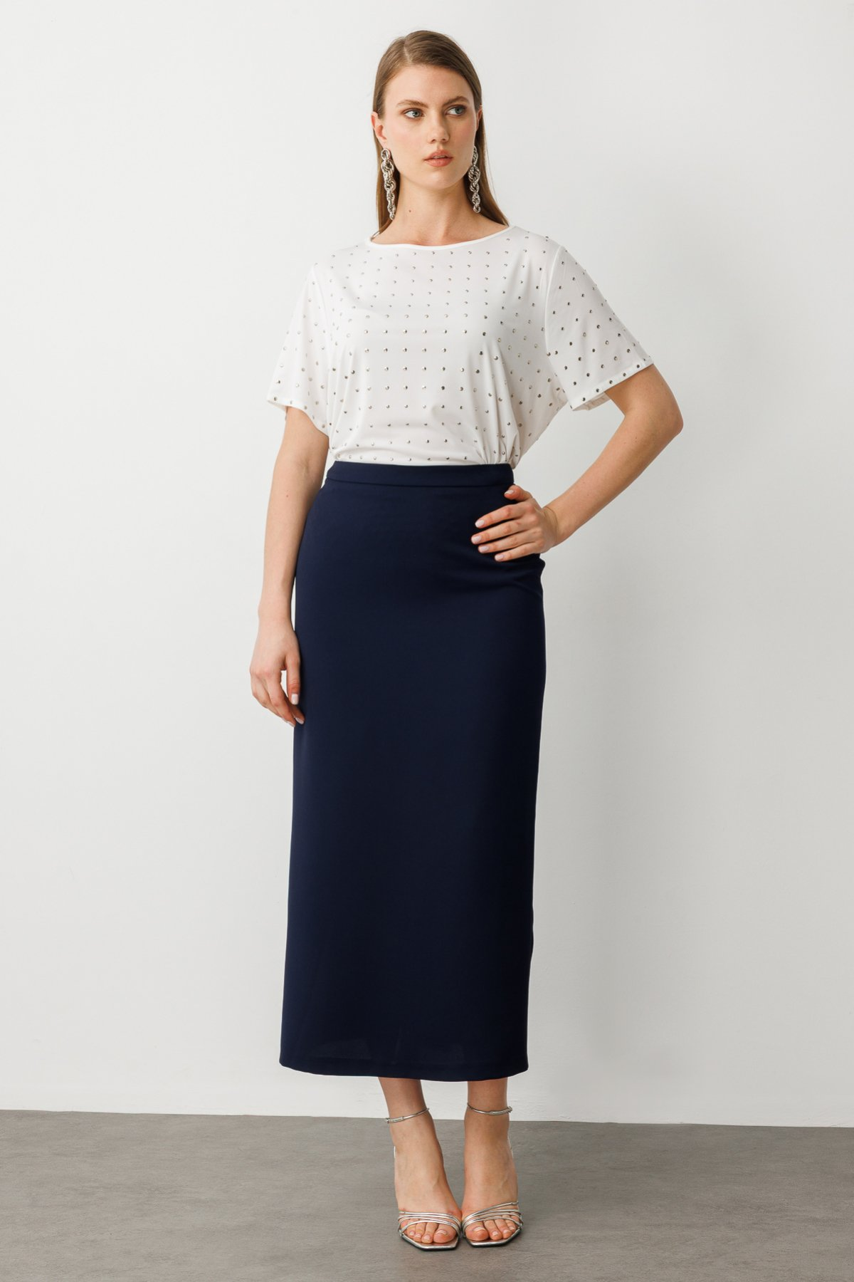 Ekol Büyük Beden Yırtmaç Görünümlü Uzun Etek