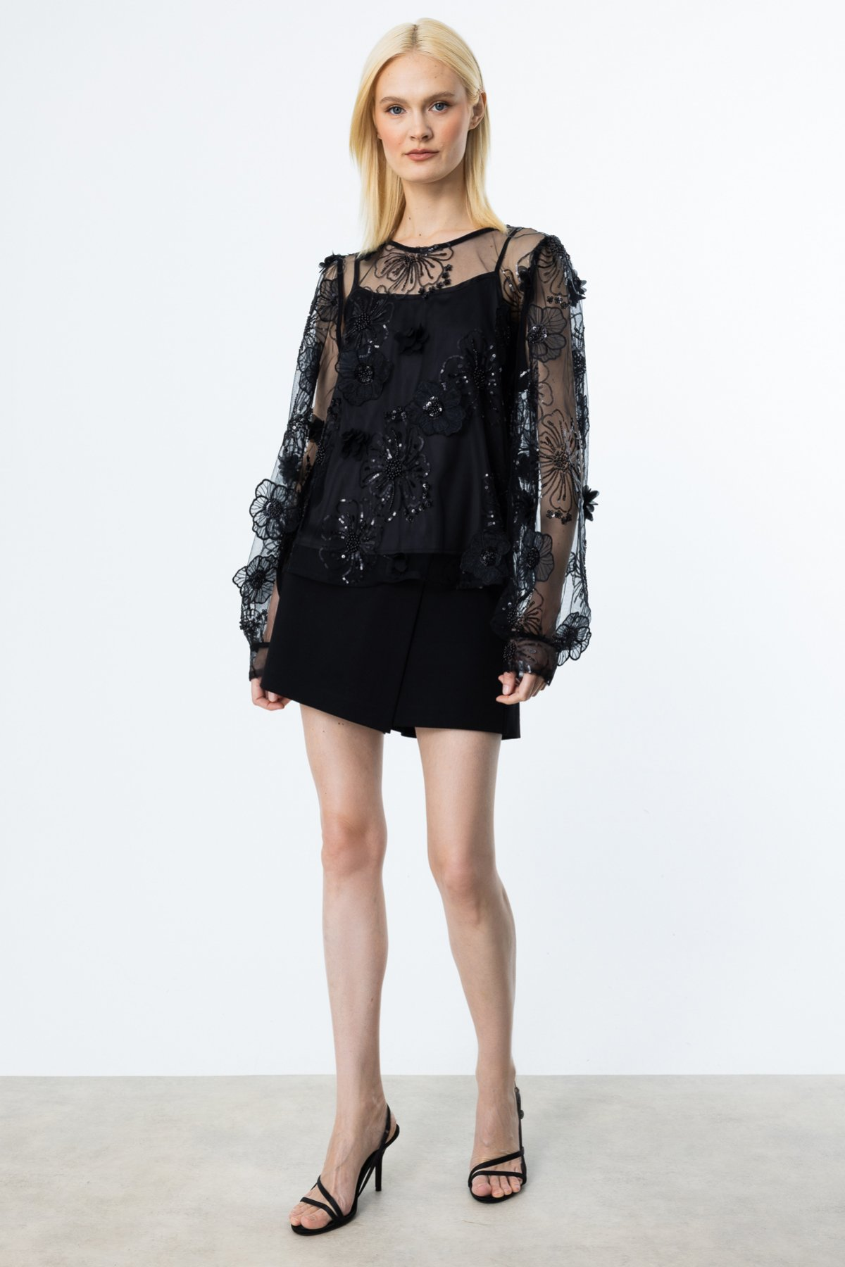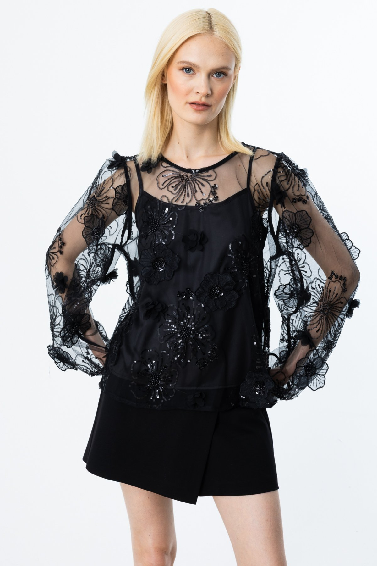 Ekol İç Atletli Pul Çiçek İşlemeli Blu