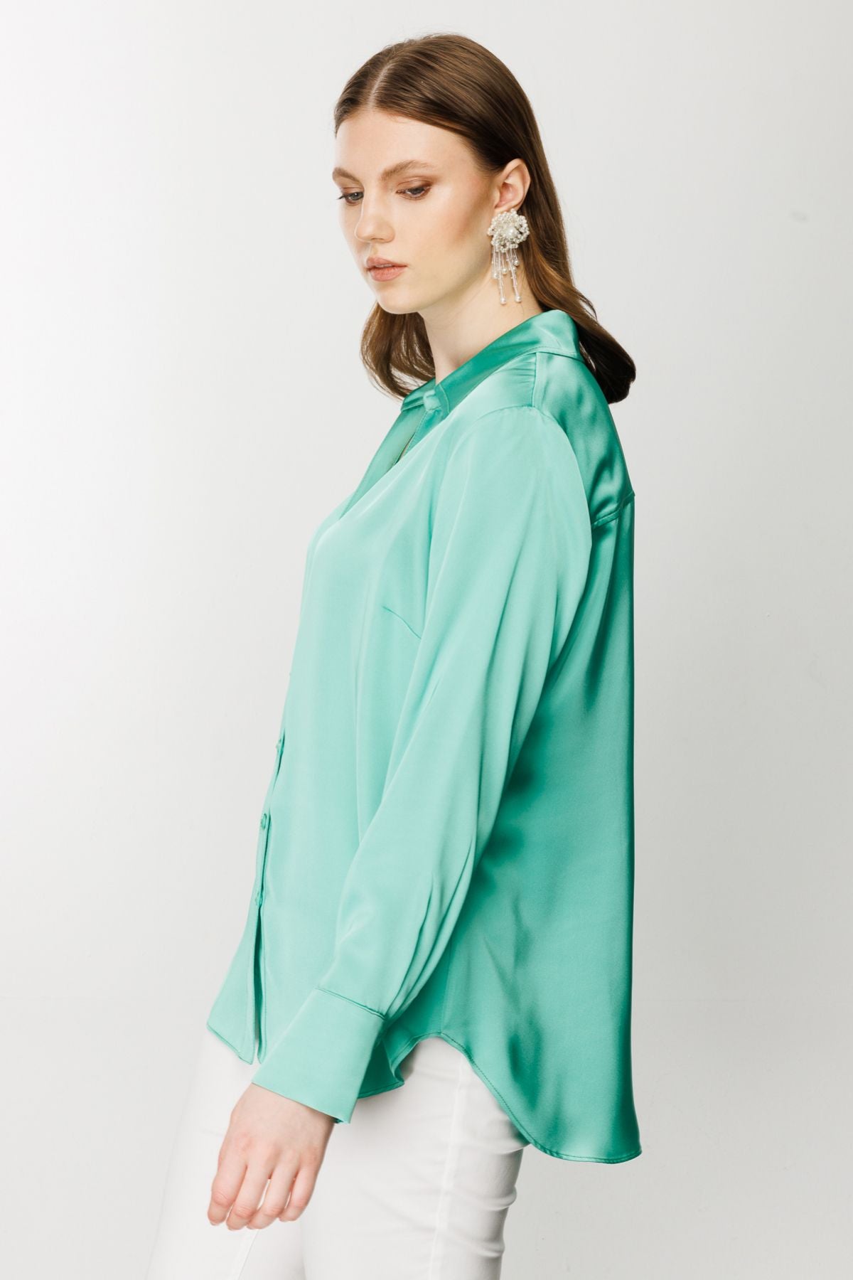 Ürün Özellikleri: Parlak saten görünümlü, önü düğmeli; Ürün Kalıbı: Tam Kalıp; Ürün Kalınlığı: Orta; Ürün Boyu: 74 cm; Kumaş İçeriği: %95 poliester %5 elastan; Ürün Sezonu: ilkbahar/yaz; Manken Ölçüleri: 1.75cm 105/80/108 Beden: 44/1/XL;
