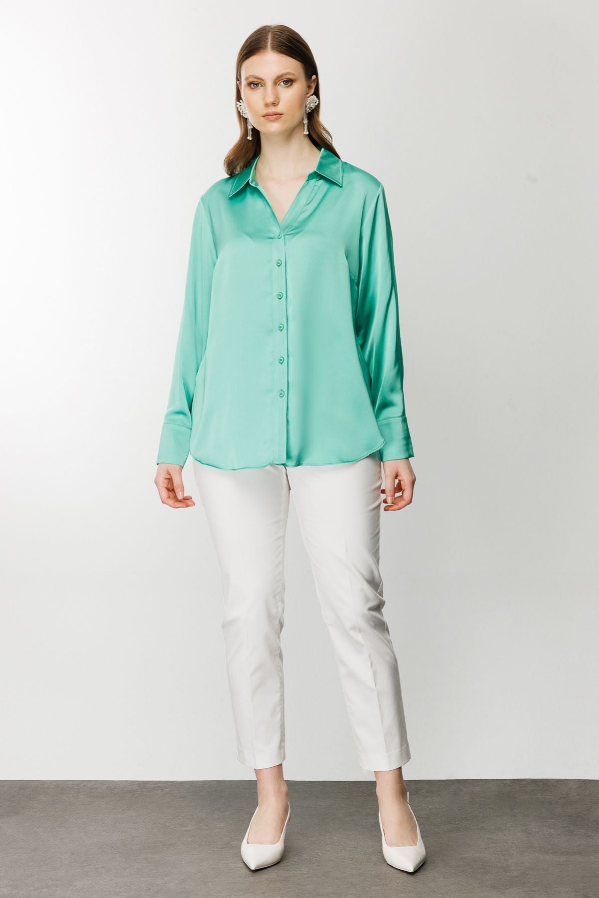 Ürün Özellikleri: Parlak saten görünümlü, önü düğmeli; Ürün Kalıbı: Tam Kalıp; Ürün Kalınlığı: Orta; Ürün Boyu: 74...