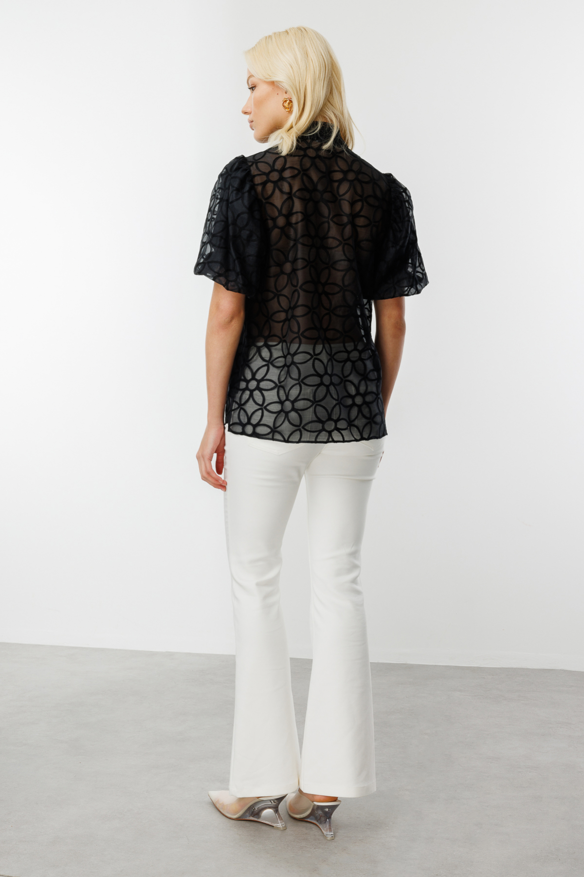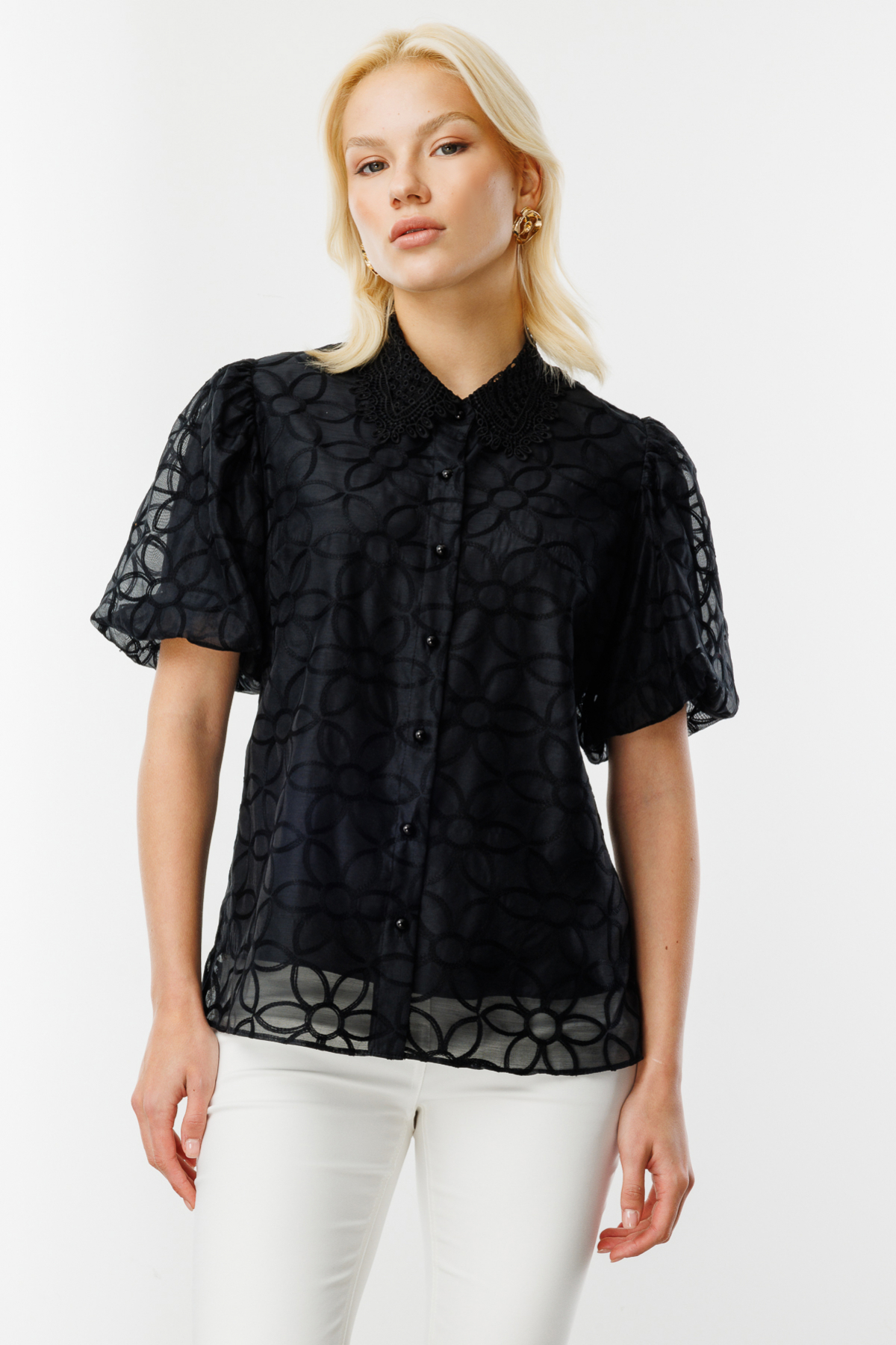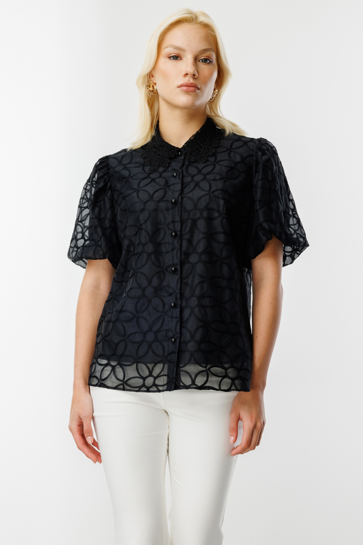 Ürün Özellikleri:Yakası dantelli, çiçek işlemeli, yarım astarlı, düğmeli, balon kol