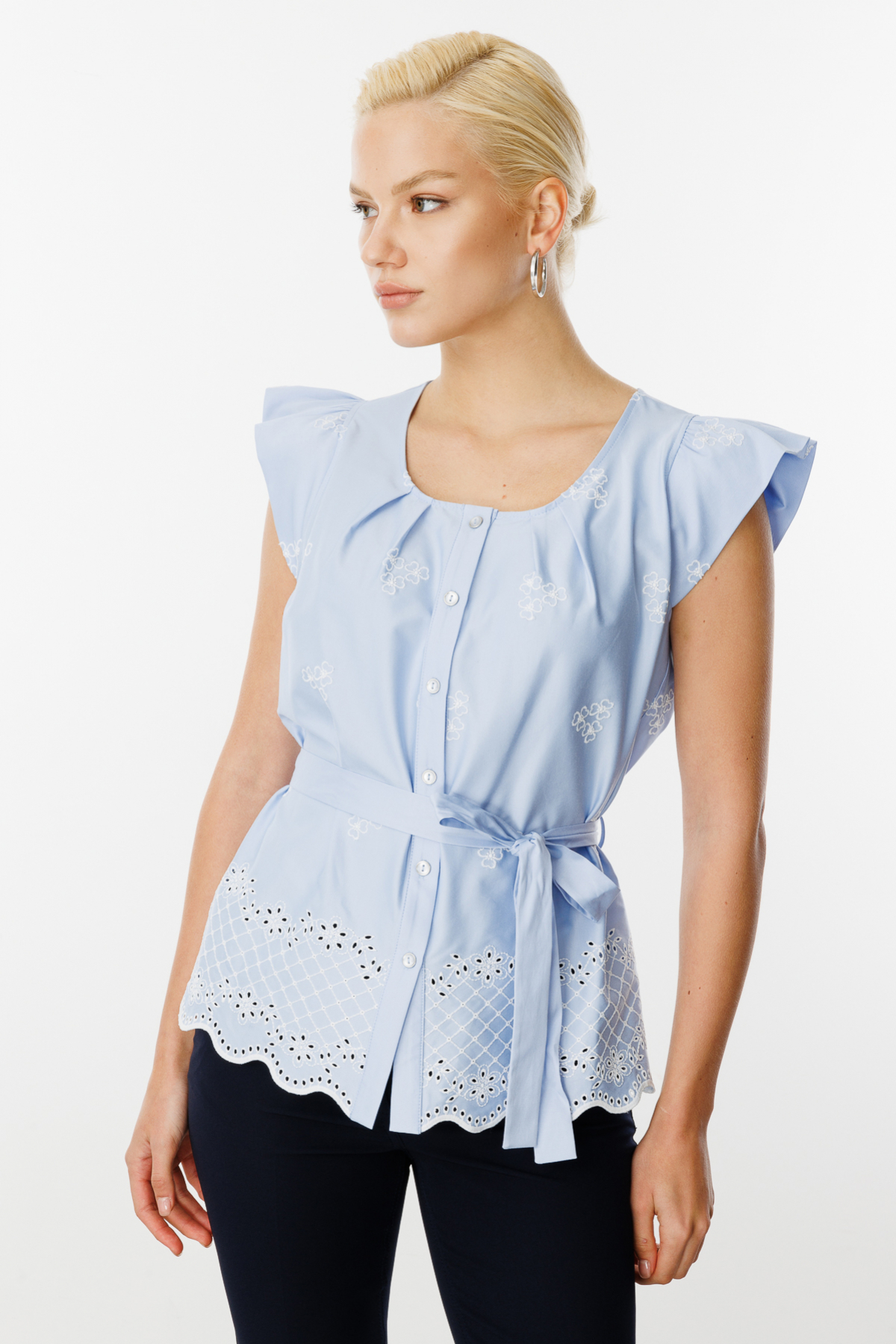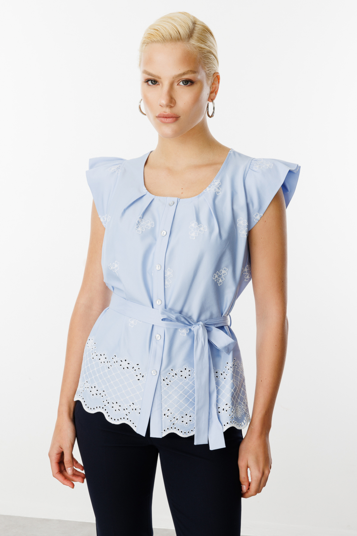 Ürün Özellikleri:Sıfır yaka, kolsuz, çiçek işlemeli, beli kuşaklı, düğmeli
