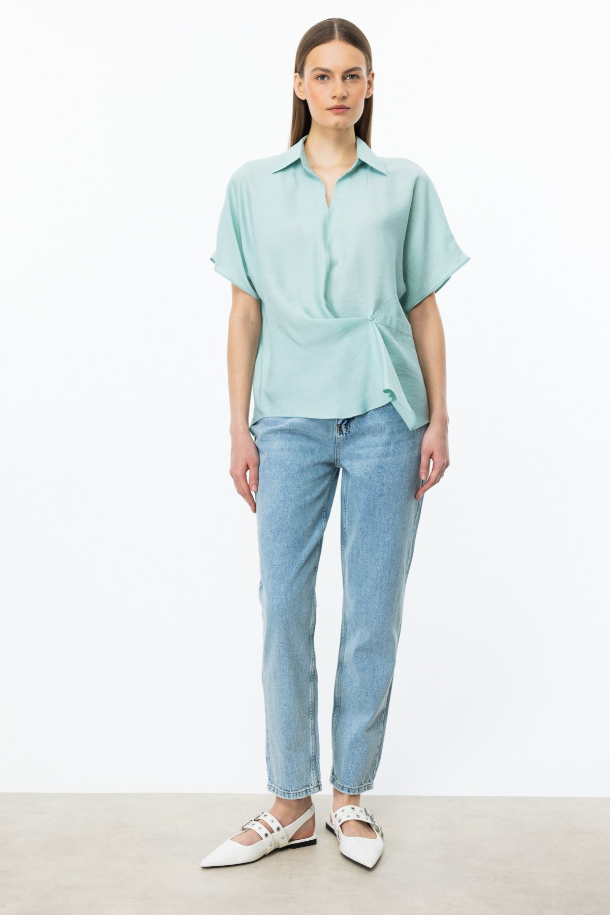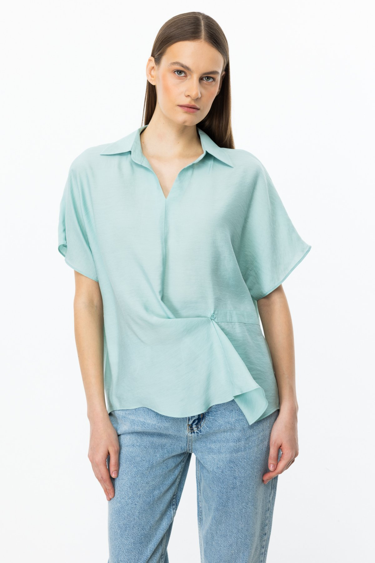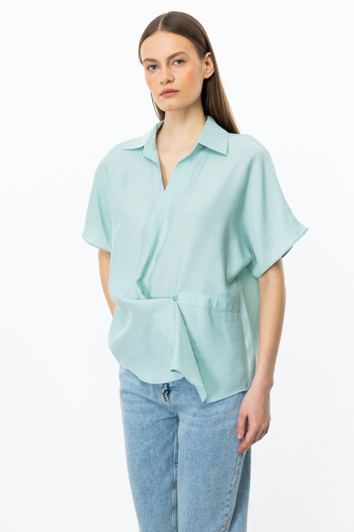 Ürün Özellikleri: Yarasa kollu, önü düğme detaylı, kendinden kırışık kumaşlıÜrün Kalıbı: Tam KalıpÜrün Kalınlığı: İnceÜrün Boyu: 65...