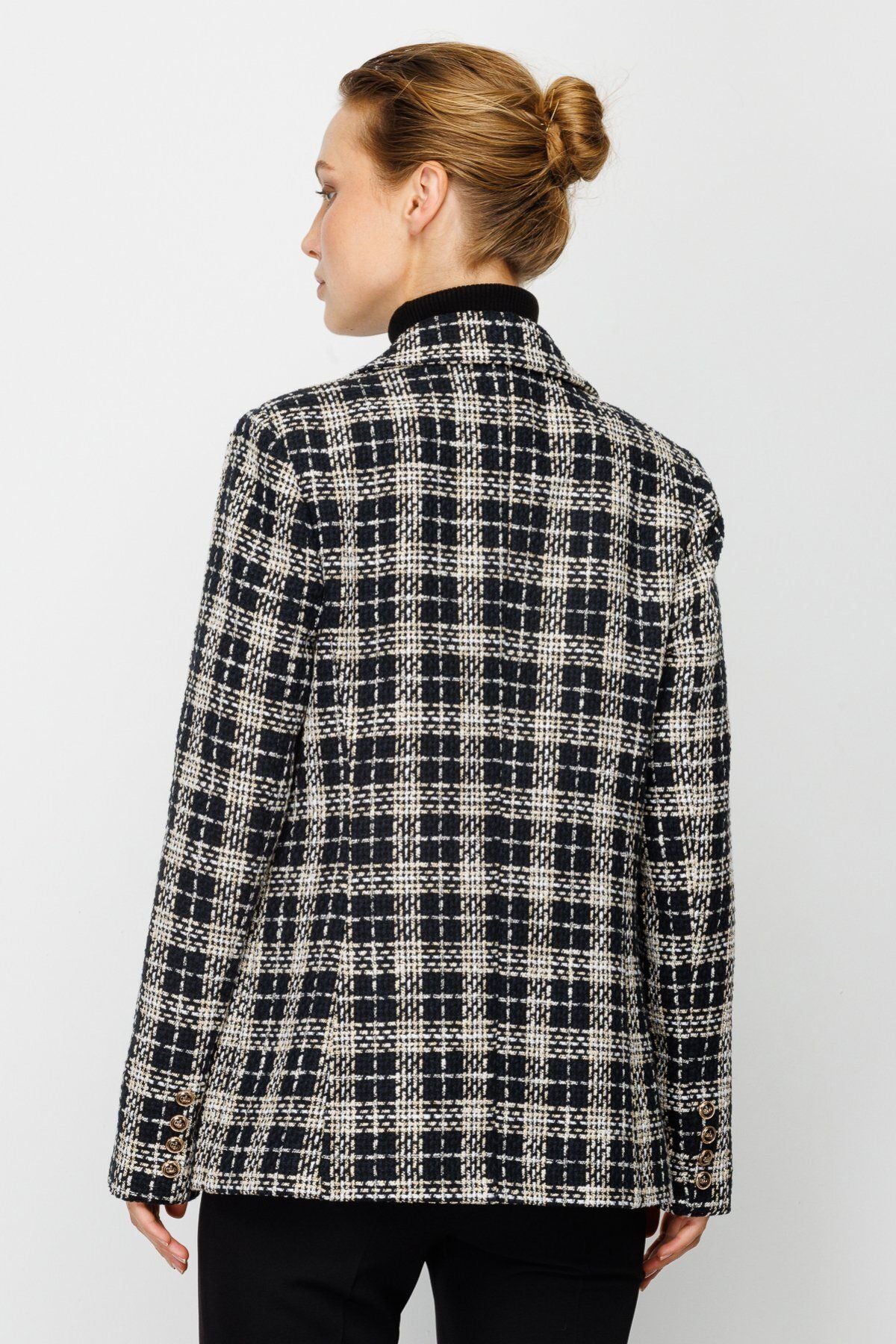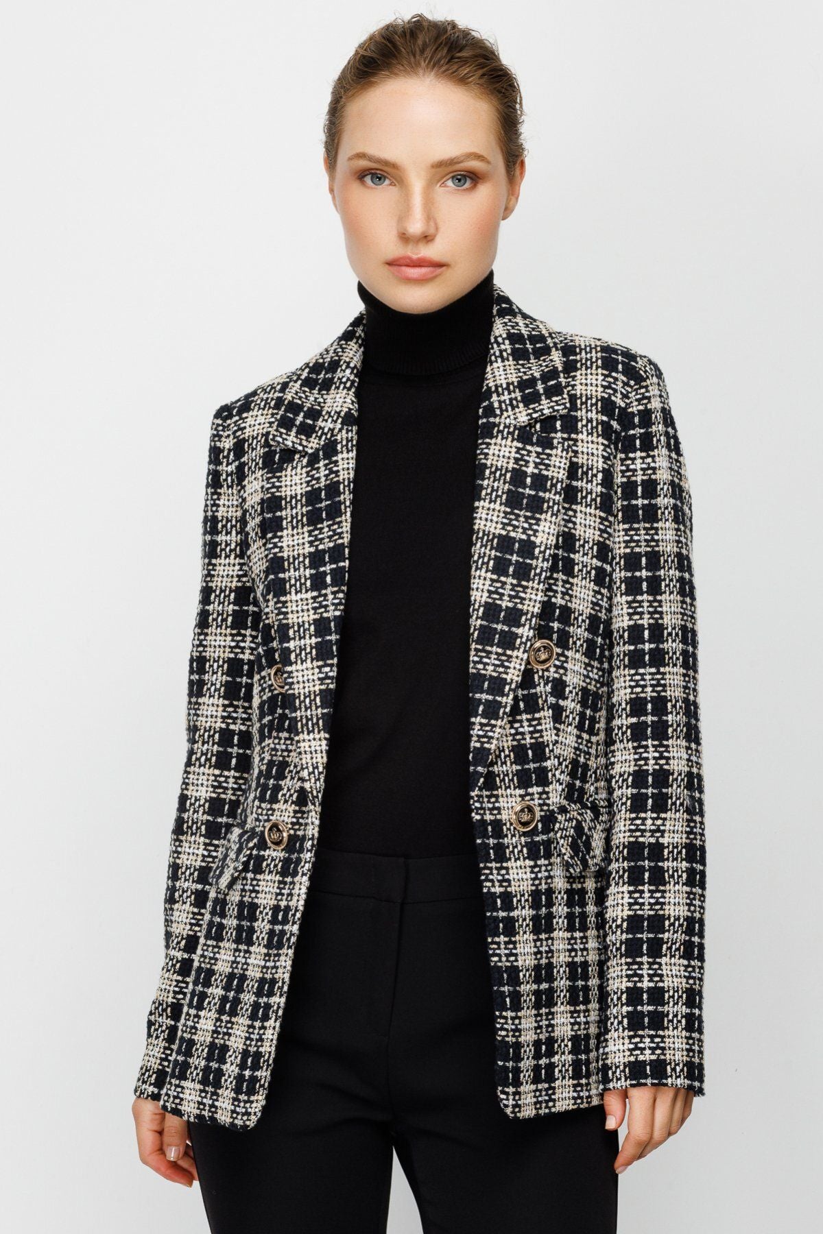 Ürün Özellikleri:; Süs düğmeli; Simli şanel kumaş; Astarlı; Ürün Kalıbı:Tam Kalıp; Ürün Kalınlığı:Orta; Ürün Boyu:68 cm; Kumaş İçeriği:%60 co %33 pes %5 a f %2 lurex; Manken Ölçüleri:; Örnek Beden: Ekol: 38; Manken Boyu: 176 cm; Manken Ölçüleri: 84/61/89;