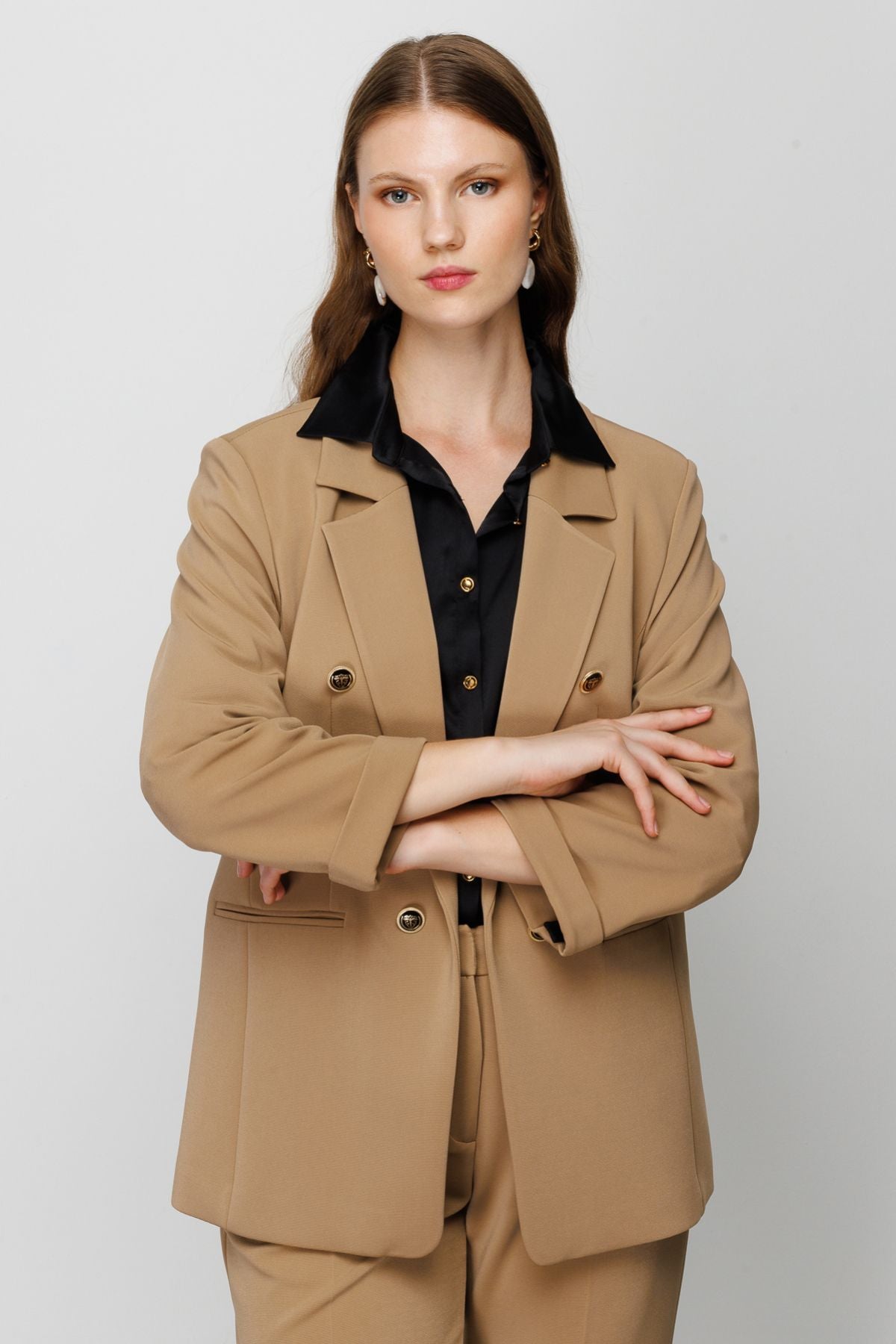 Ürün Özellikleri:; -Süs düğmeli -Duble kol -Önü astarlı -Takım etek:03005 -Takım pant: 02013 -Ürün Kalıbı:Tam Kalıp; -Ürün...