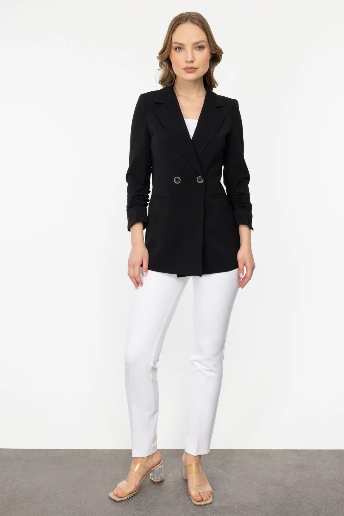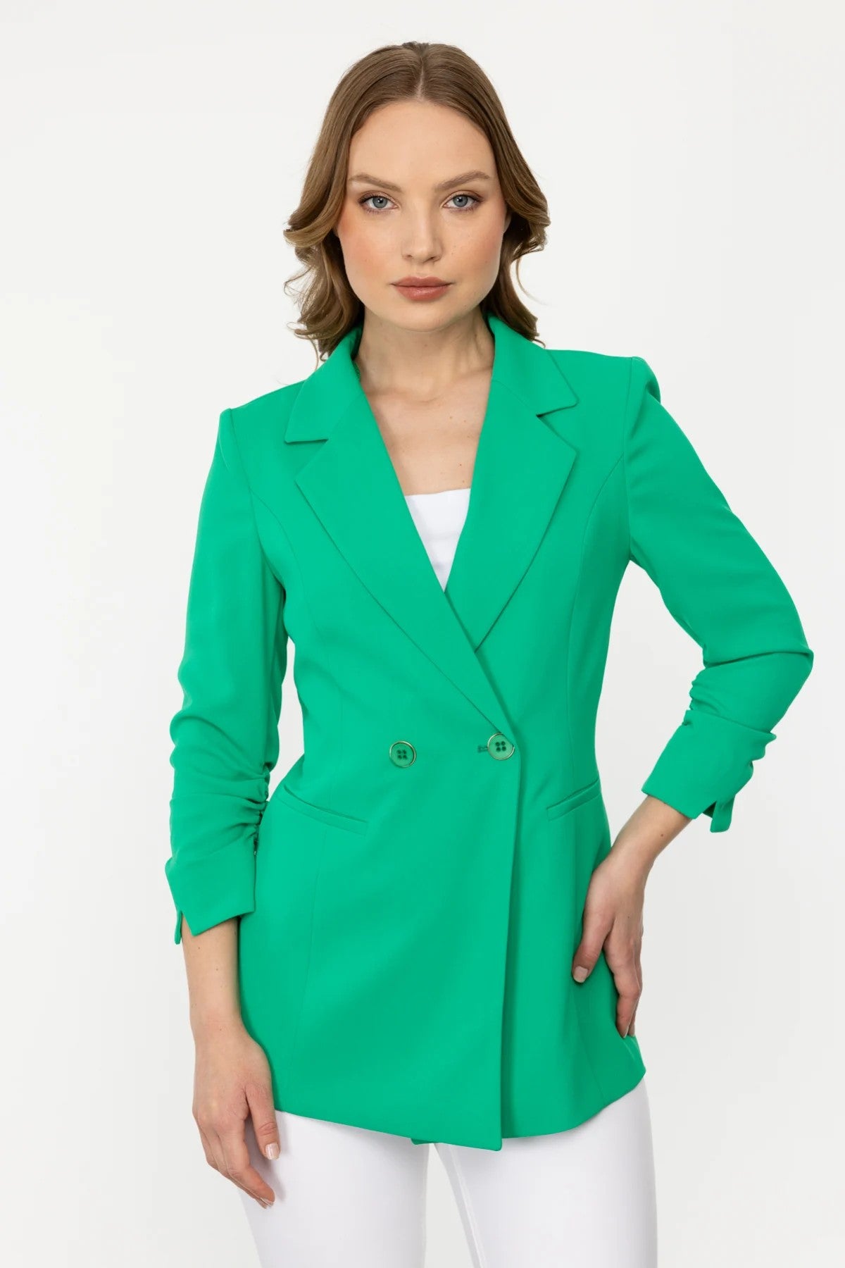 Ürün Özellikleri:; -Önü astarlı:Çizgi cep; -Önü düğmeli:Kolu büzgülü; -Ürün Kalıbı:Tam Kalıp; -Ürün Kalınlığı:Orta; -Ürün Boyu:70 cm; -Kumaş İçeriği:%100 poliester; -Ürün Sezonu:İlkbahar/yaz; Manken Ölçüleri:; Örnek Beden: Ekol: 36; Manken Boyu: 176 cm; Manken Ölçüleri: 84/61/89;