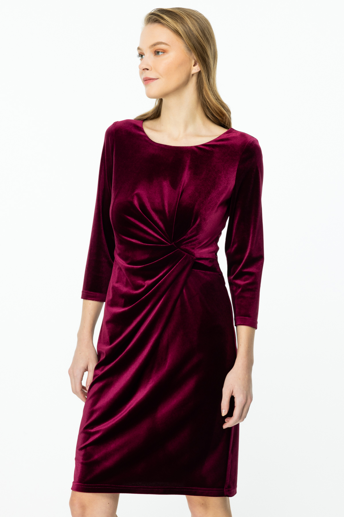 Kadife, beli büzgülü, uzun kol, arkadan fermuar kapamalı