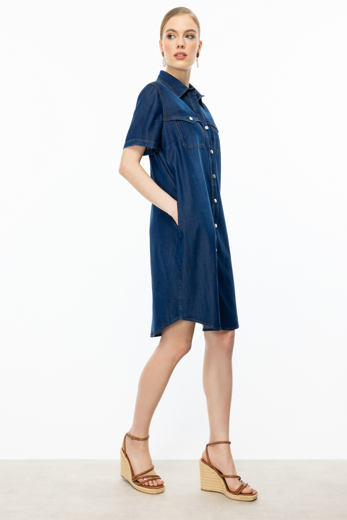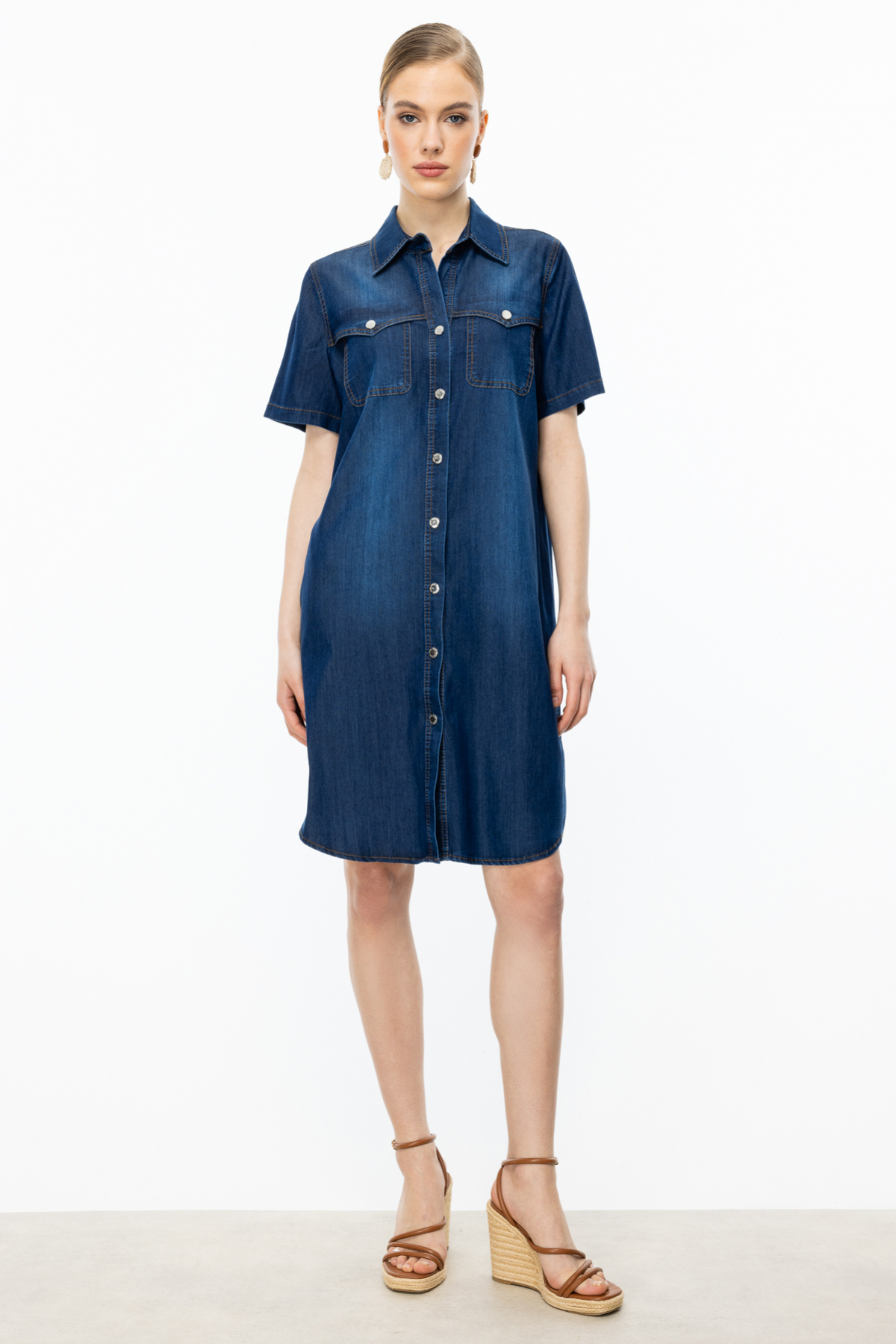 Ürün Özellikleri:Astarsız, yandan cepli, kısa kol, çift kapak cepli, midi boy, çıtçıtlı