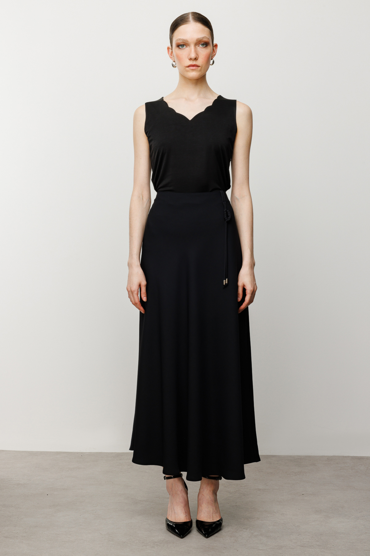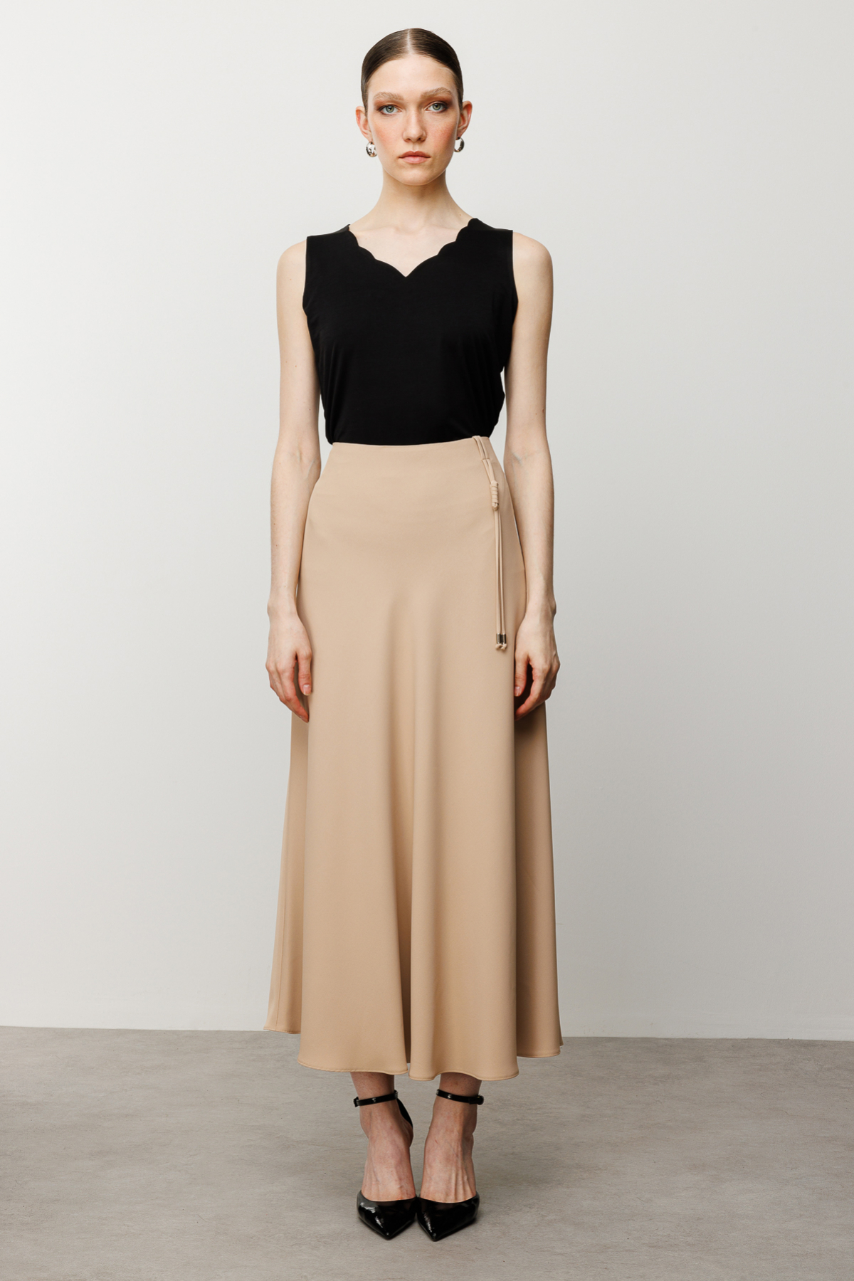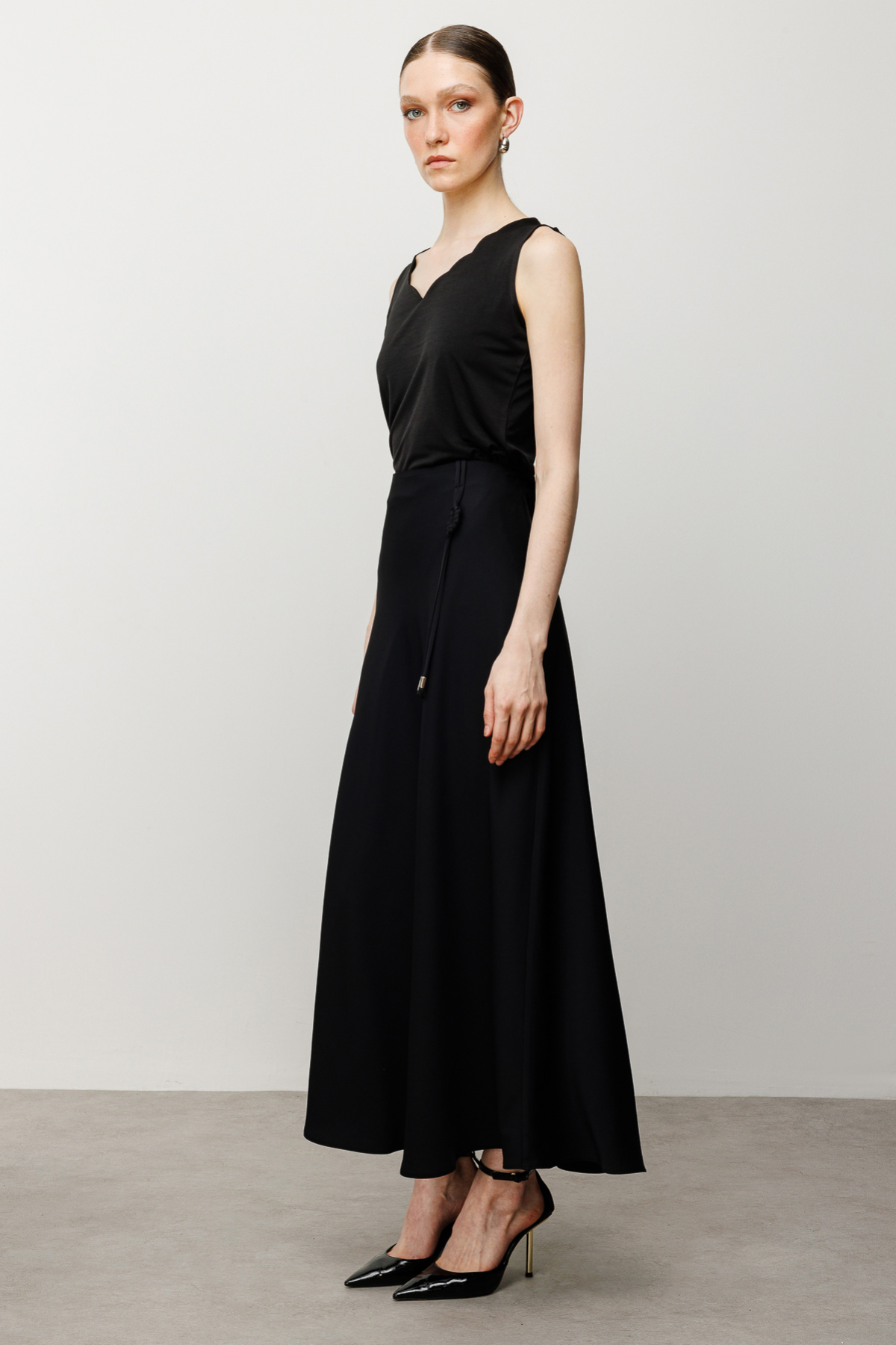 Ürün Özellikleri:Yandan fermuarlı, etek ucu volanlı, maxi boy, süs ip detaylı