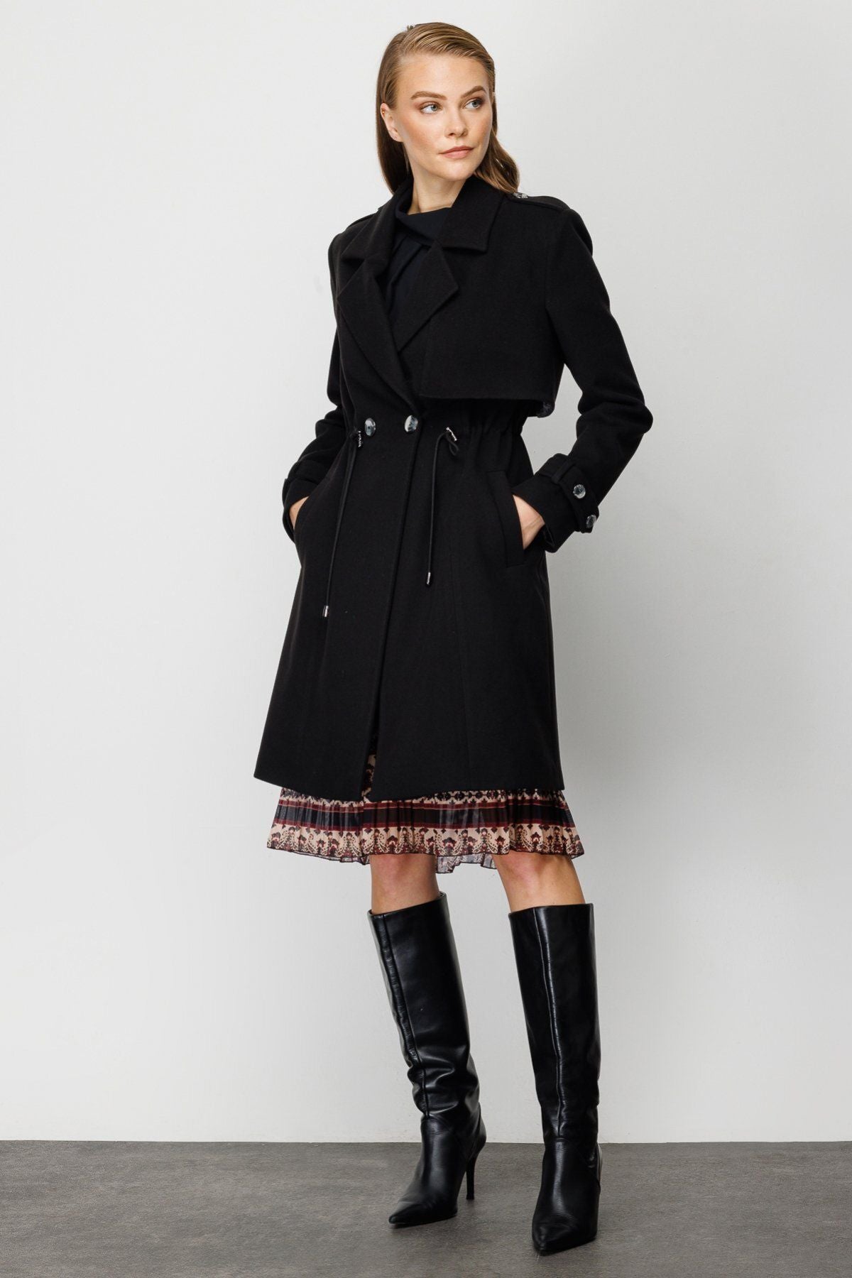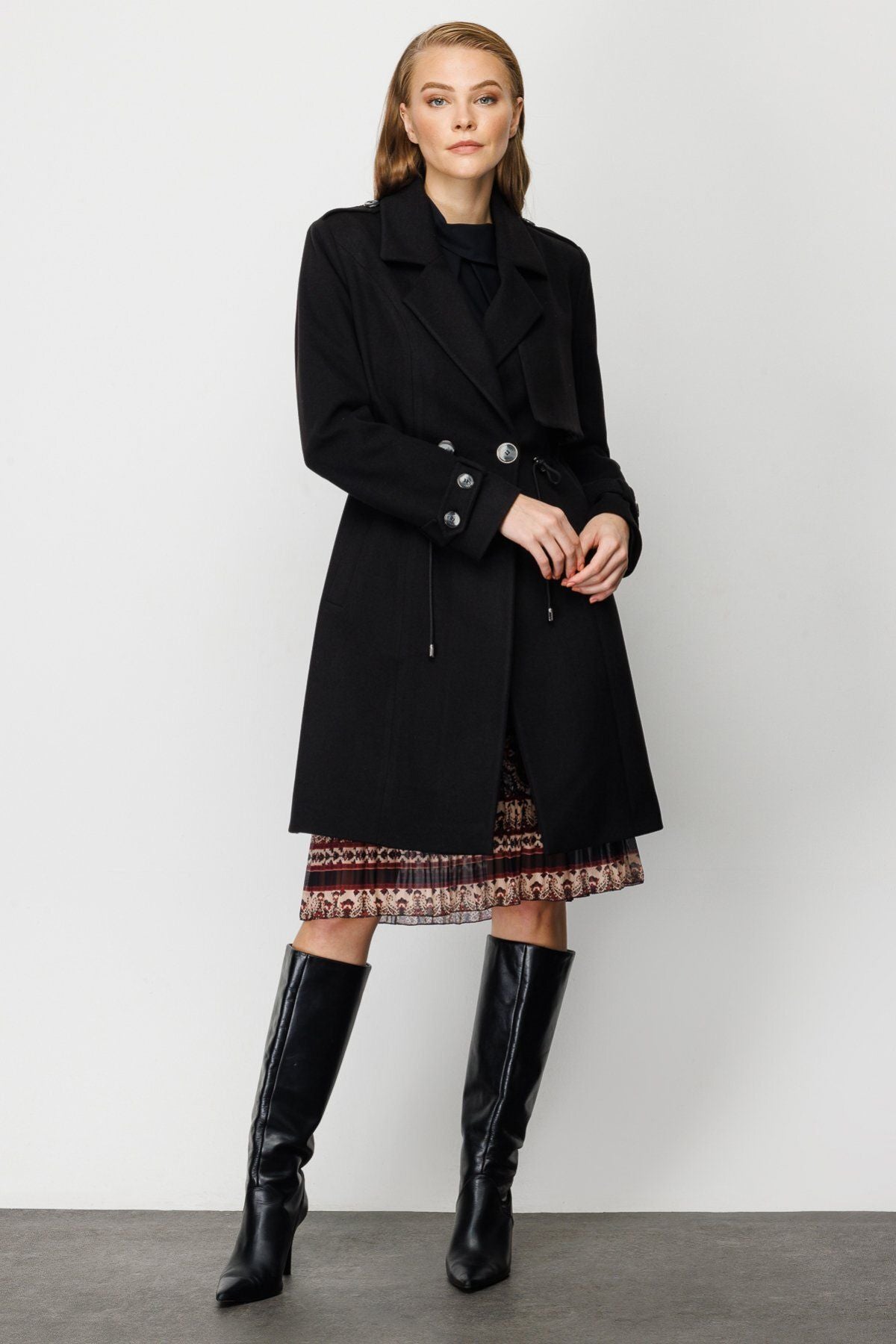 Ürün Özellikleri:; Apoletli; Kaşe kumaş; Astarlı; Önü tek düğmeli; Beli stopperli; Ürün Kalıbı:Tam Kalıp; Ürün Kalınlığı:Orta; Ürün Boyu:94 cm; Kumaş İçeriği:%82 poliester %15 rayon %3 spandeks; Manken Ölçüleri:; Örnek Beden: Ekol: 38; Manken Boyu: 176 cm; Manken Ölçüleri: 84/61/89;