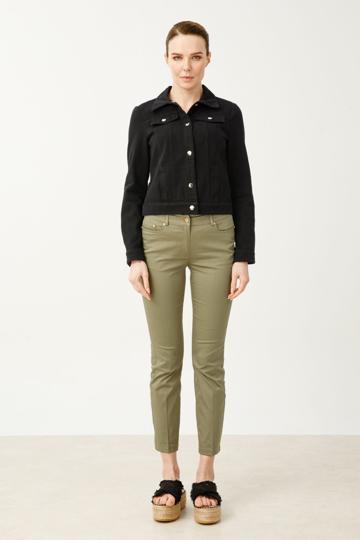 Ürün Bilgisi:; Yakalı,çıtçıtlı,göğüsü kapak cepli,yandan cepli,astarsız kısa mont; Kumaş İçeriği:%95 pOLYESTER %5 ELASTAN; Manken Boyu 177cm; Manken Ölçüleri 87/63/92; Numune Beden 38/S/1; Ürün Boyu 48 cm;