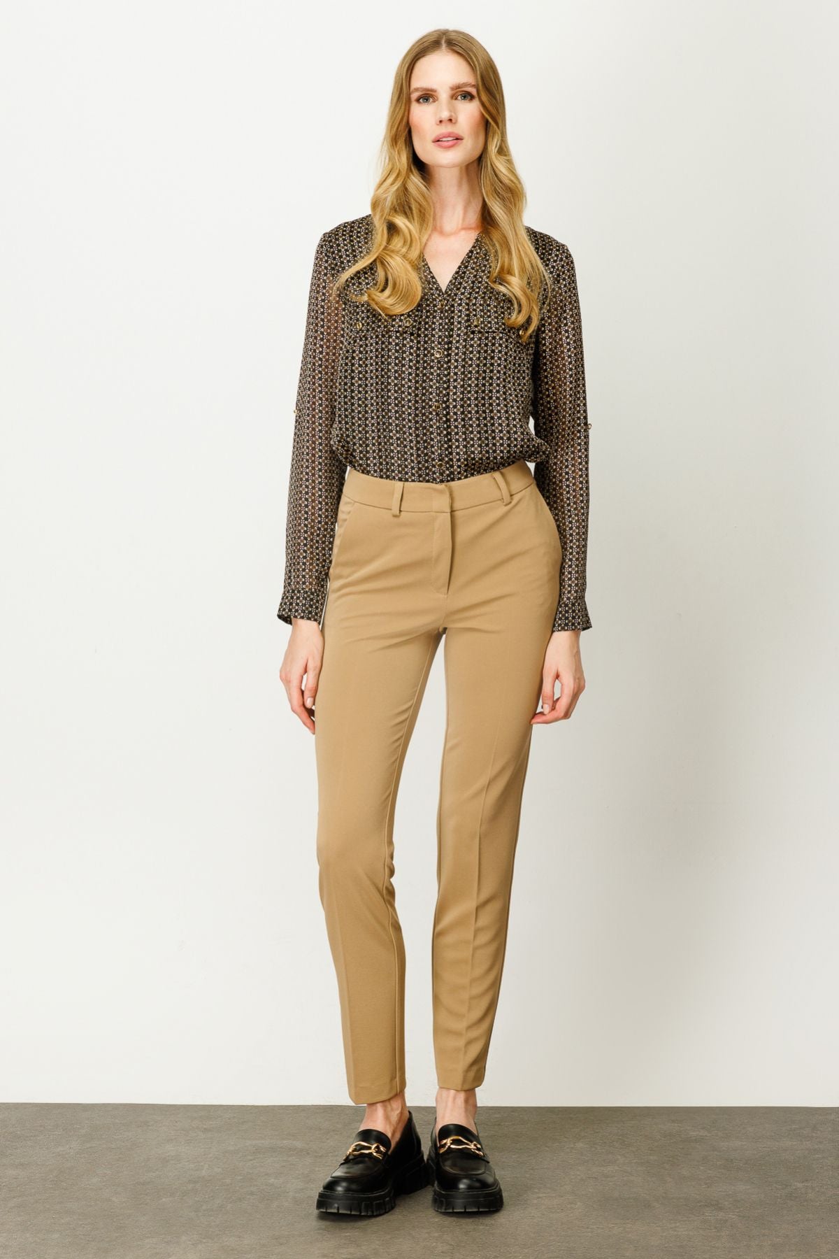 Ürün Özellikleri: -Dar paça; -Cepli; -Ara bel; -Kendinden dokulu kumaş, -Ürün Kalıbı:Tam Kalıp; -Ürün Boyu:101 cm; -Kumaş...