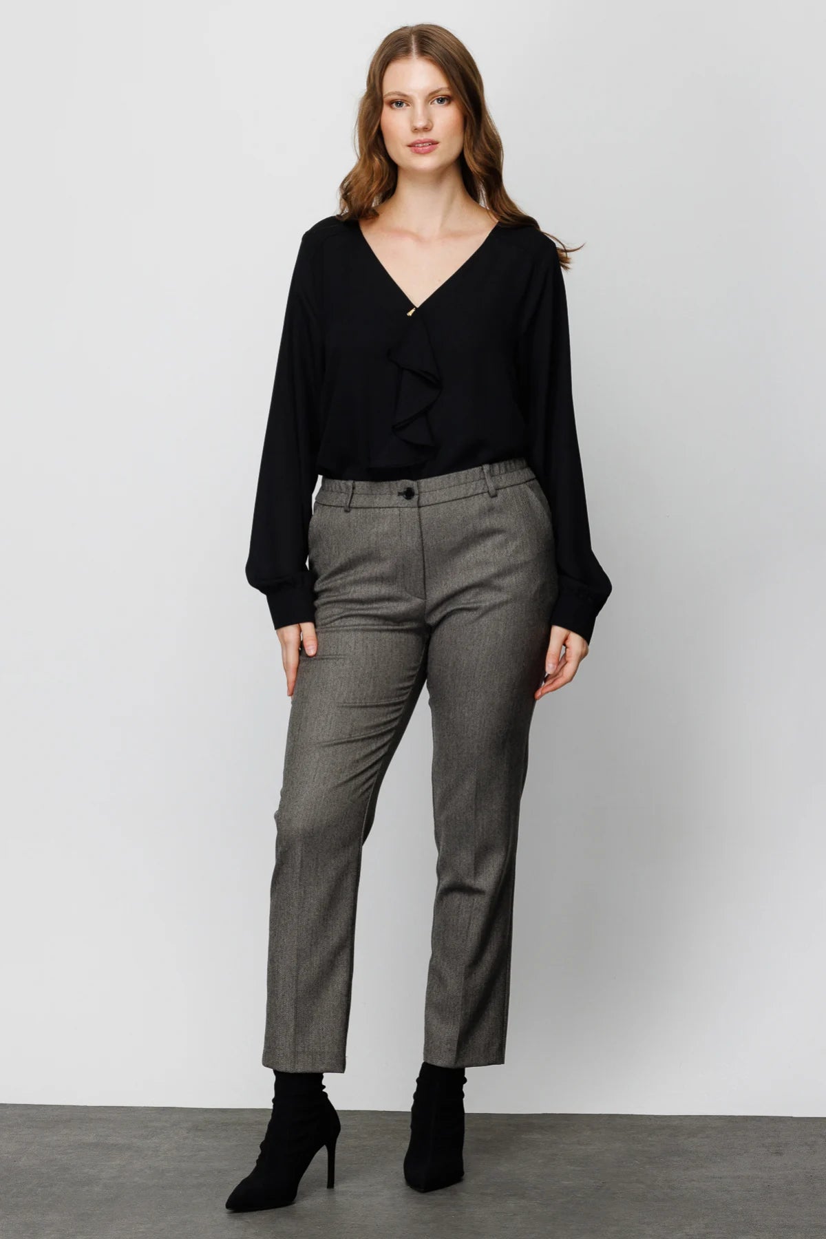 Ürün Özellikleri:; Beli lastikli; Kendinden desenli kumaş; Cepli; Normal paça; Takım ceket:04557; Ürün Kalıbı:Tam Kalıp; Ürün Kalınlığı:Orta; Ürün Boyu:101 cm; Kumaş İçeriği:%65 polyester %32 viskon %1 elastan; Manken Ölçüleri; Örnek Beden: Ekol: 1(44); Manken Boyu: 175 cm; Manken Ölçüleri: 105/80/108;