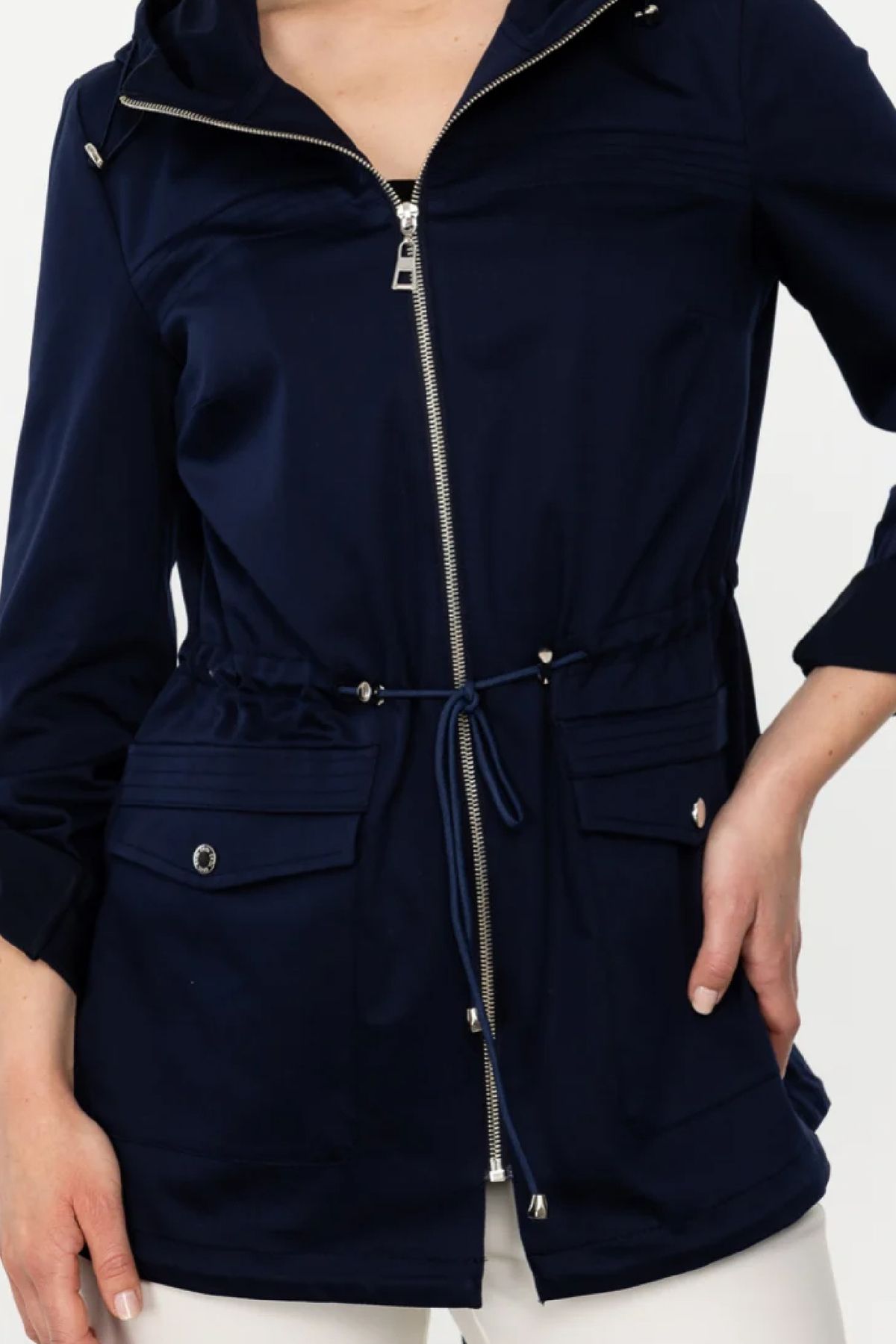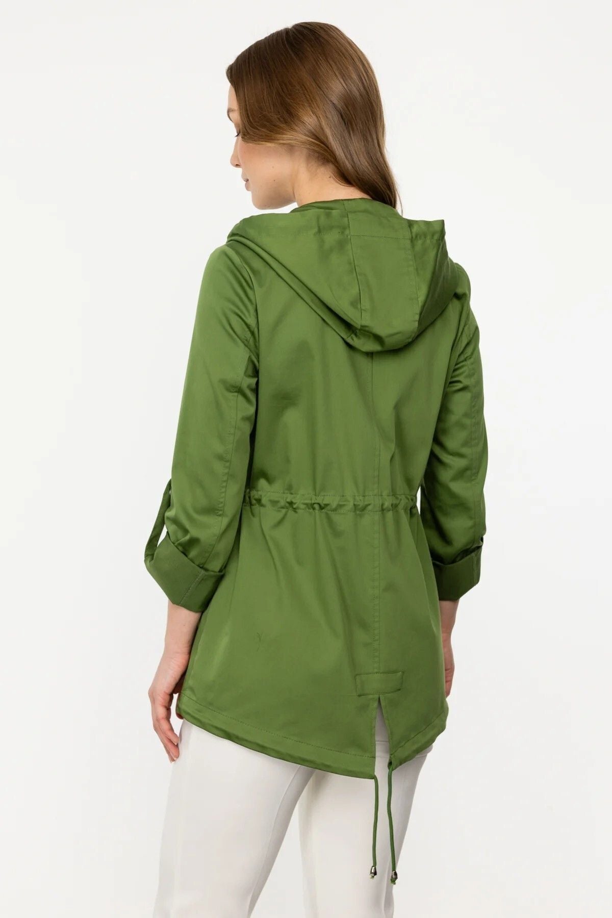 Ürün Bilgisi:; Ürün Özellikleri: Sabit kapüşonlu, beli büzgülü, cepli, fermuarlı, apoletli, astarsız; Ürün Kalıbı: Tam Kalıp; Ürün Kalınlığı: Orta; Ürün Boyu: 70 cm; Kumaş İçeriği: %65 cot %31pes %4 ea; Ürün Sezonu: ilkbahar/yaz; Manken Ölçüleri: 1.76cm 84/61/89 Beden: 38/S;