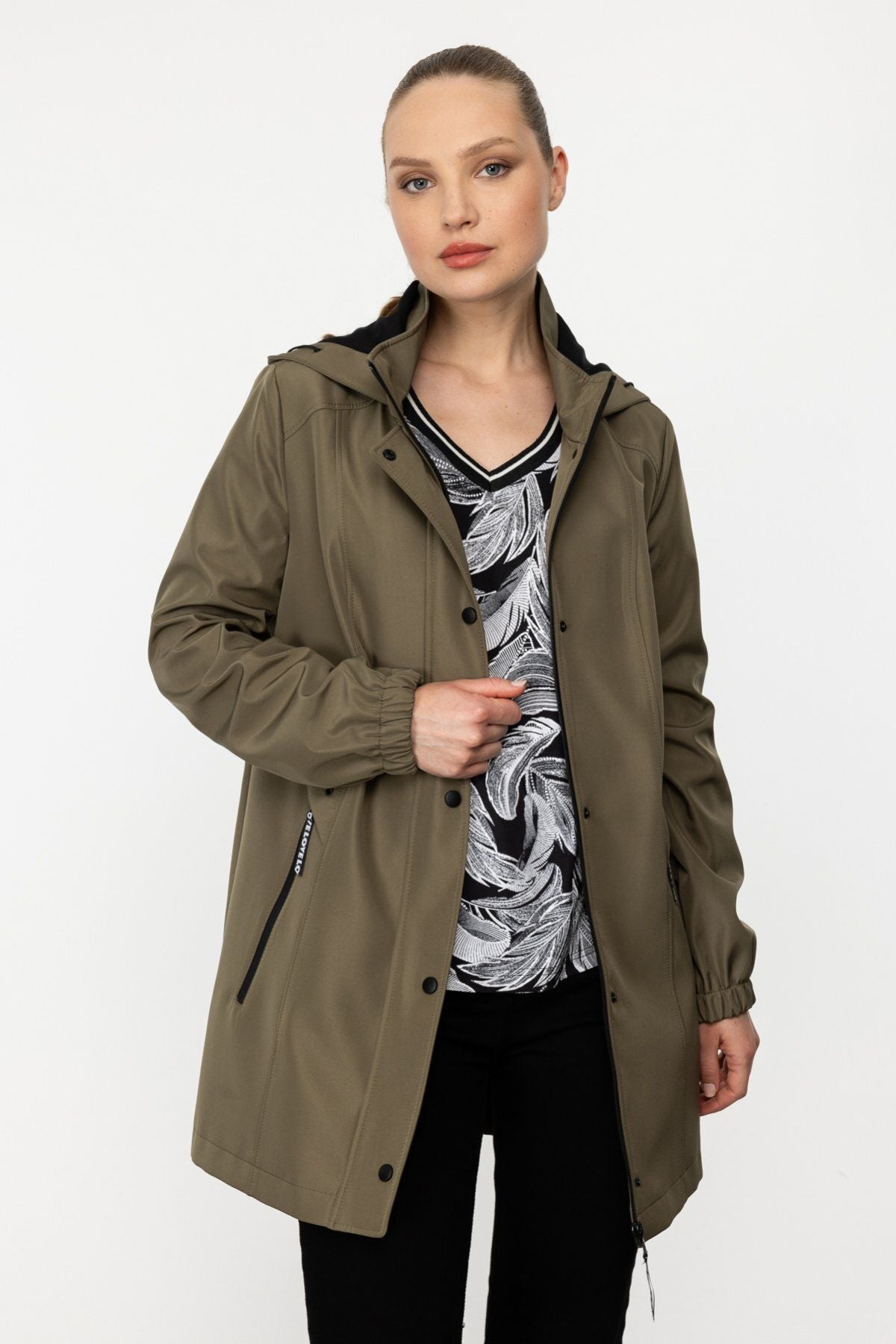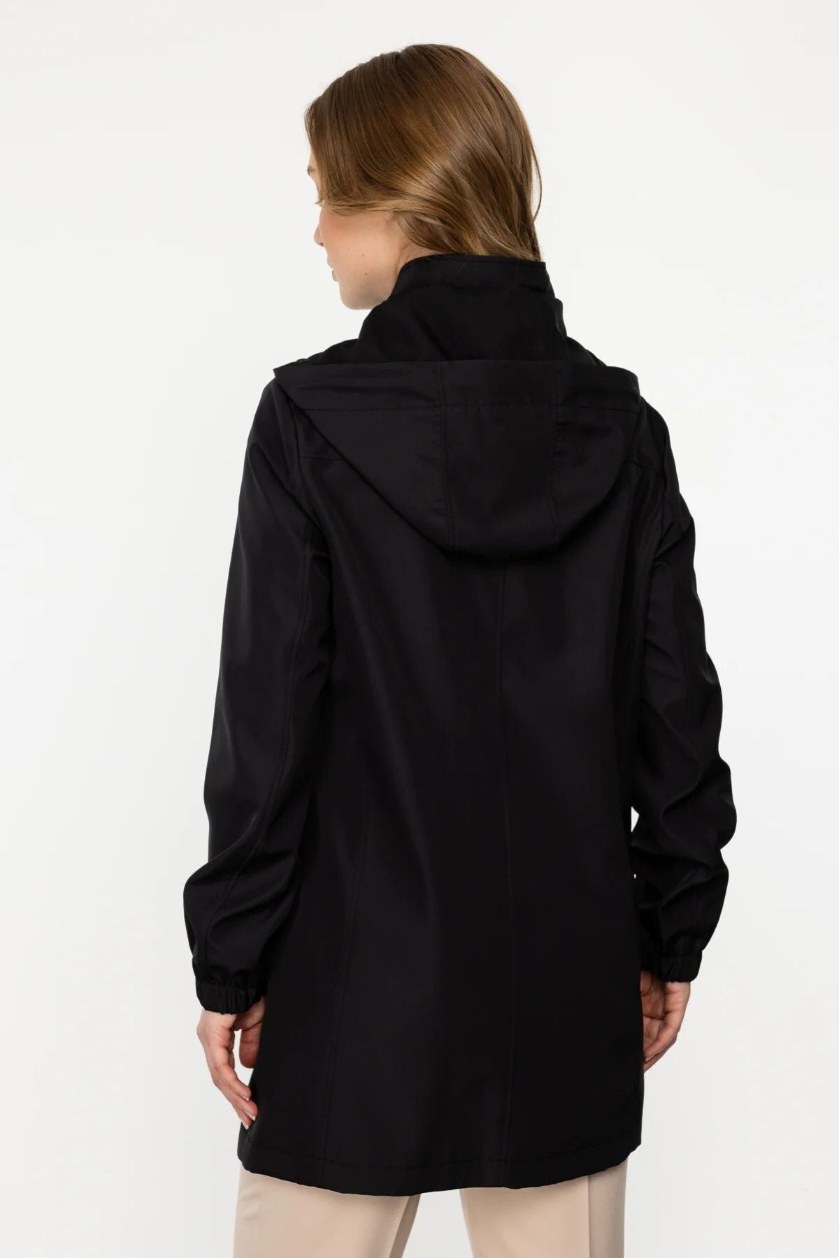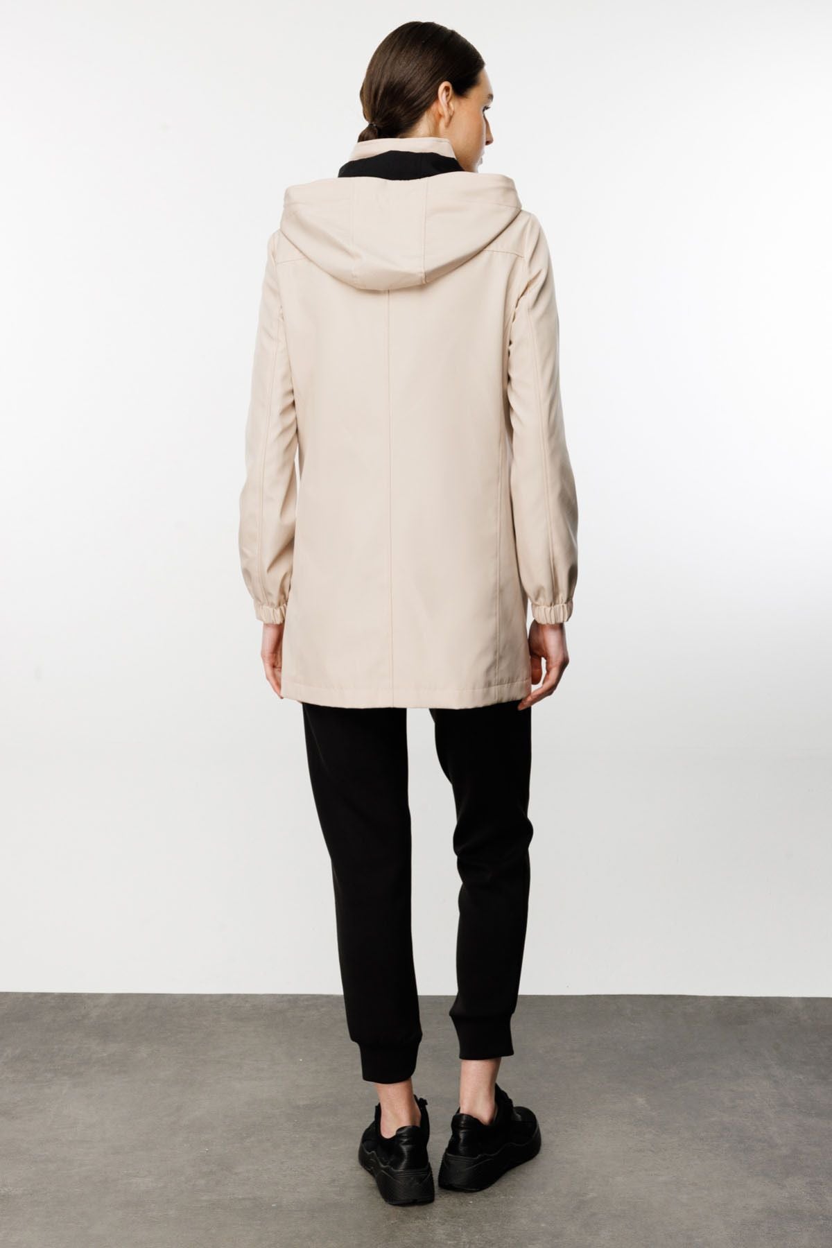 önü fermuarlı , kuş gözü detaylı iki kapak ,iki yan cepli ,uzun kol, kolları apoletli, kapüşonlı ince trençkot; %100 poliester; Manken Boyu 177cm Manken Ölçüleri 87/63/92; Numune Beden 38/S/1; Ürün Boyu ön 75, arka 81 cm;