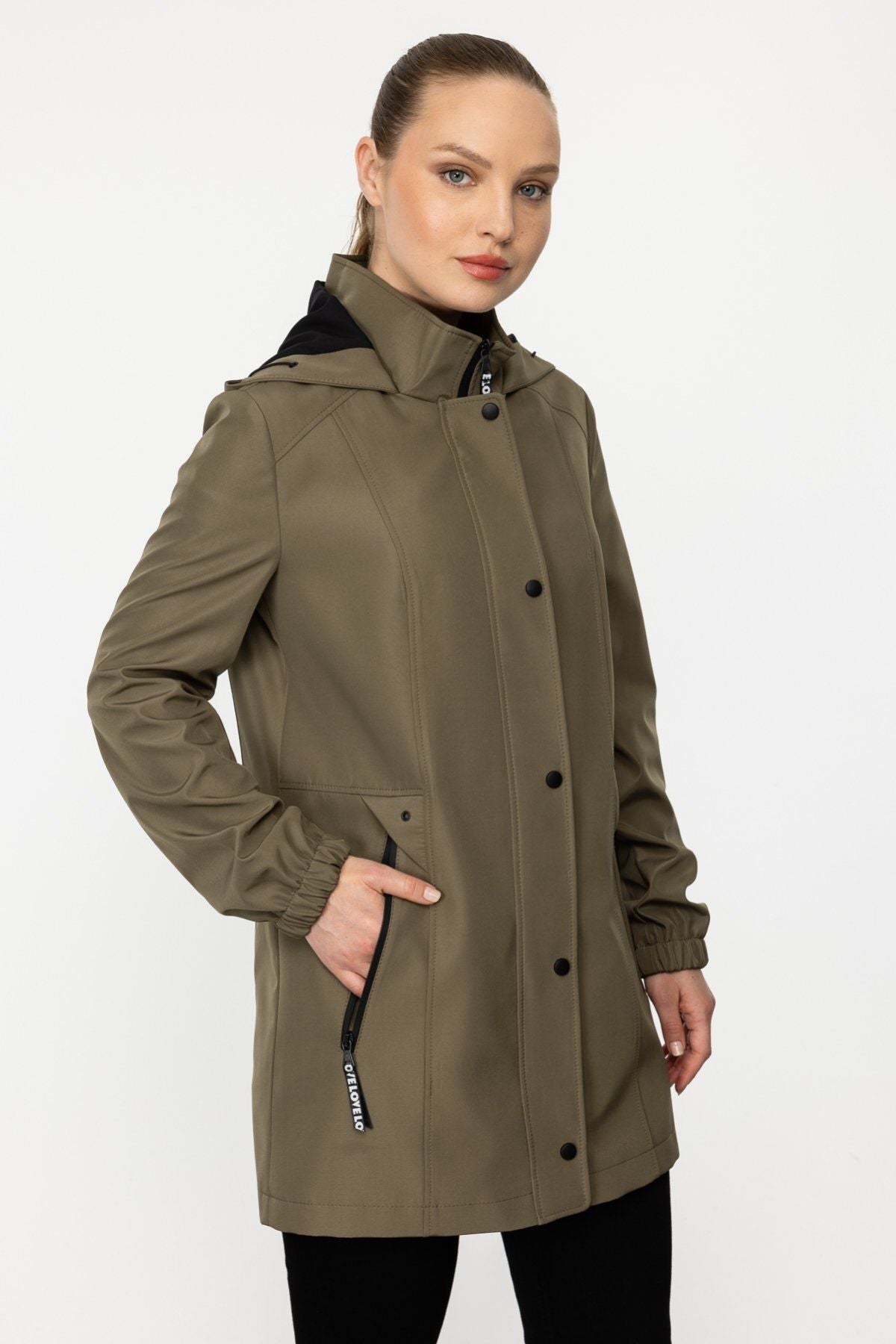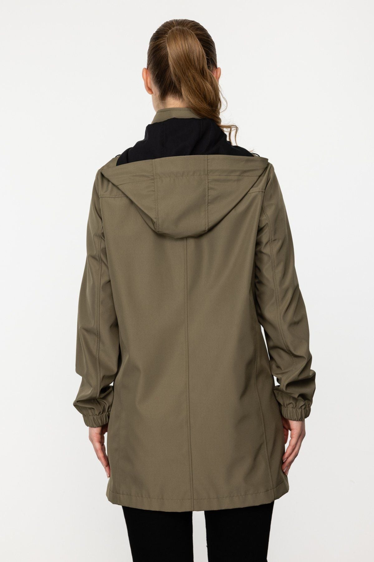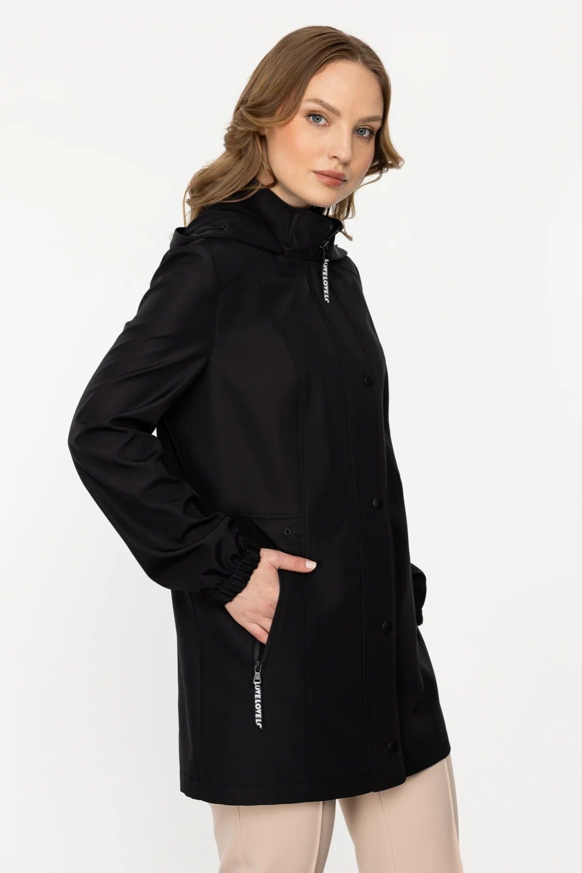 önü fermuarlı , kuş gözü detaylı iki kapak ,iki yan cepli ,uzun kol, kolları apoletli, kapüşonlı ince trençkot; %100 poliester; Manken Boyu 177cm Manken Ölçüleri 87/63/92; Numune Beden 38/S/1; Ürün Boyu ön 75, arka 81 cm;
