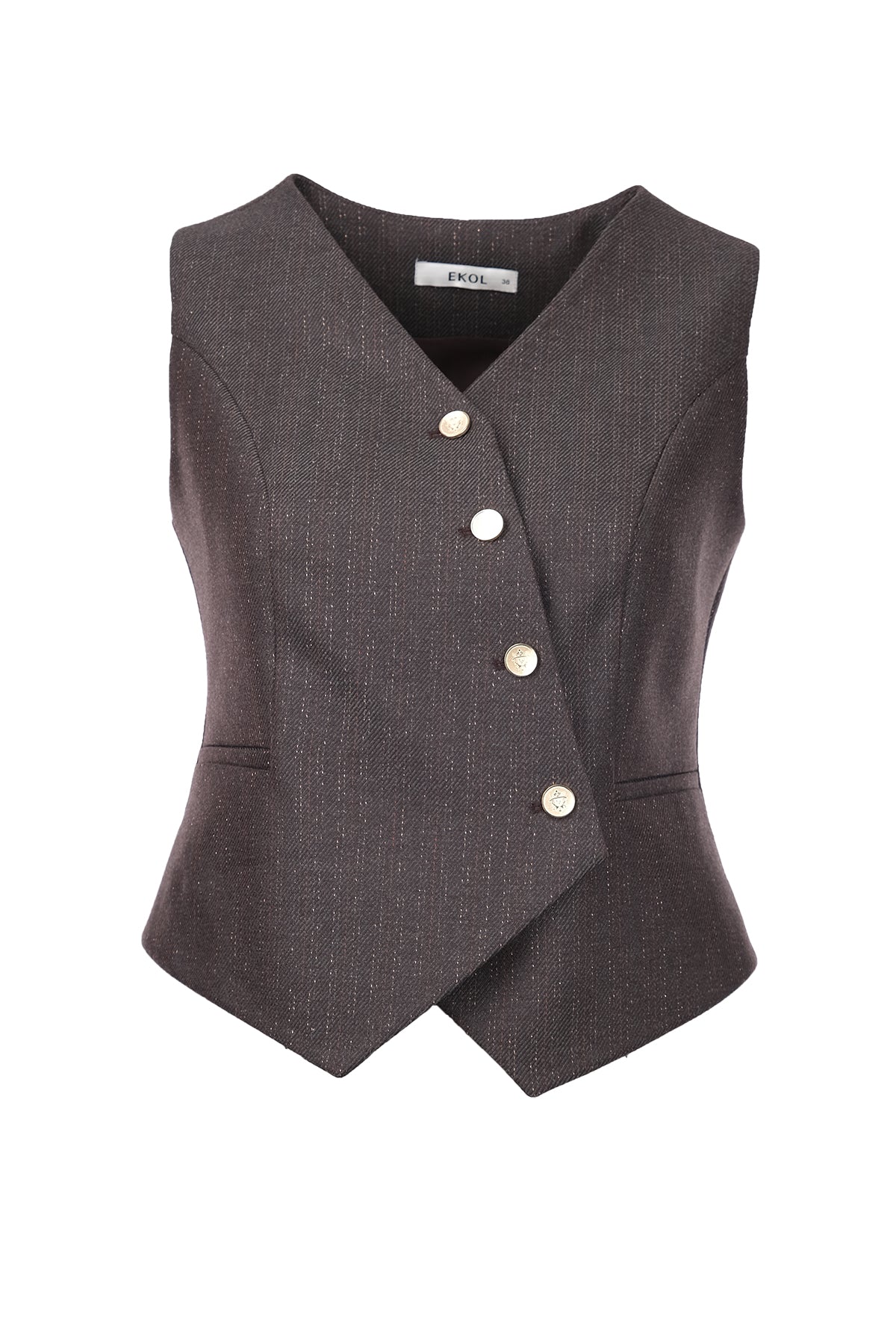 Ekol Minimalist V Yaka Kolsuz Crop Yelek - Günlük & İş Kombinleri İçin