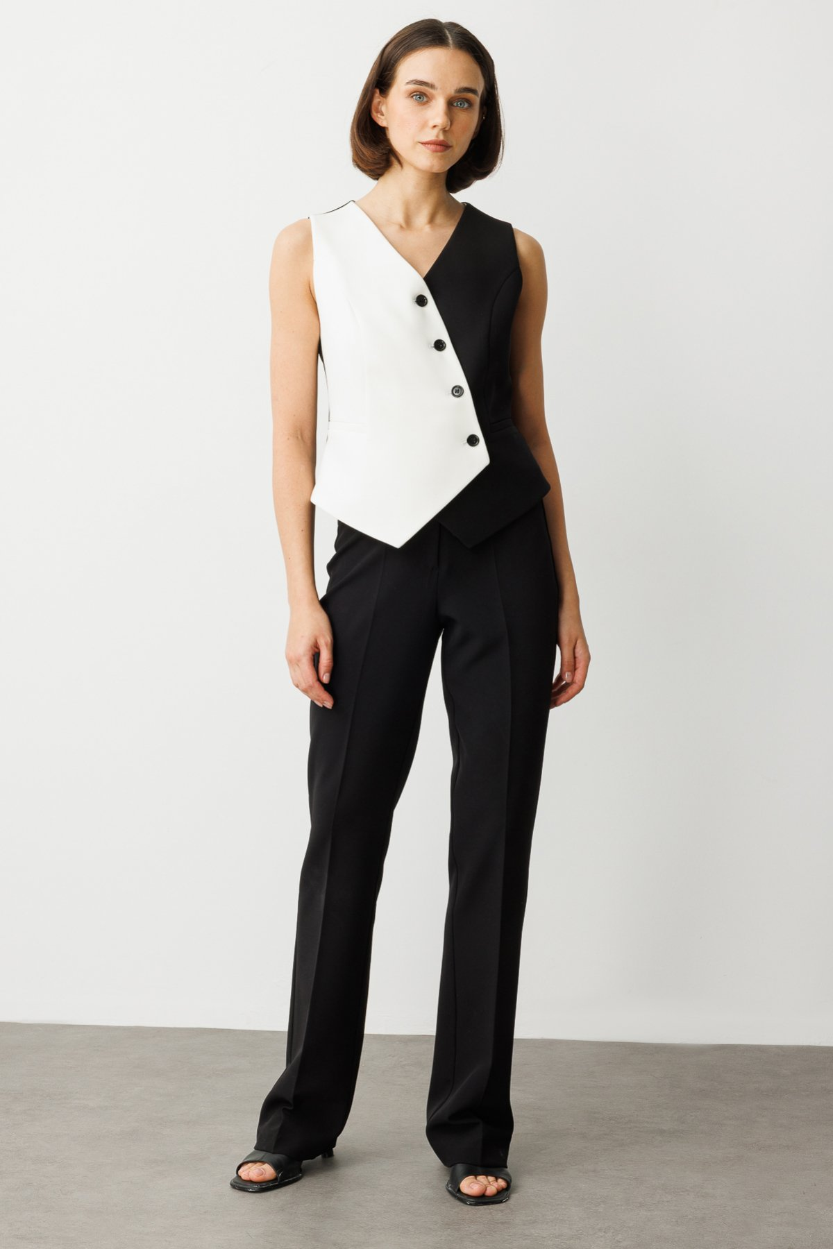 Ürün Özellikleri: V yaka, kolsuz, çift renkli, düğmeli, fleto cepli, astarlı