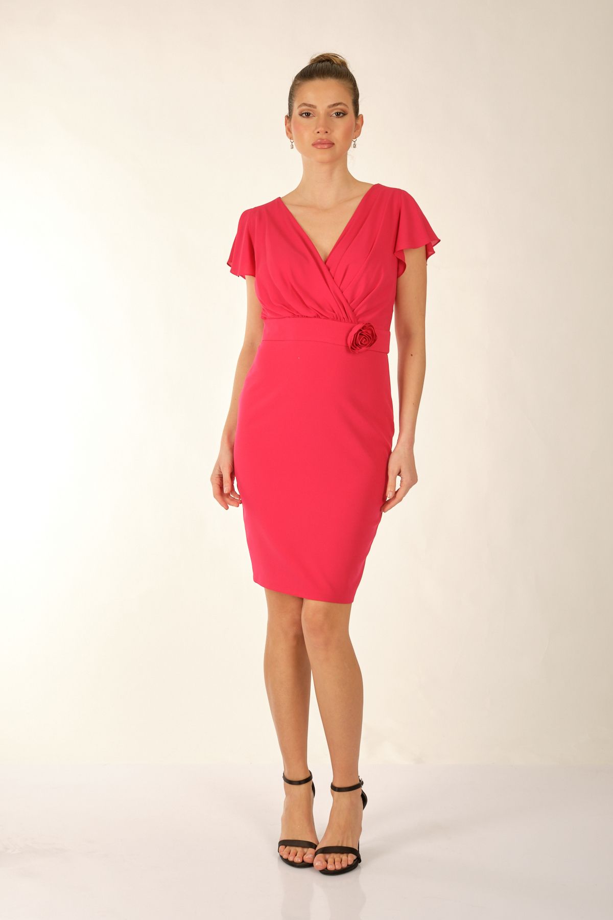 Ürün Özellikleri:; Marka : Explosion; Model : Mini Elbise; Sezon : İlkbahar/Yaz; Desen : Gül Detaylı; Materyal : % 100 Polyester;; Yaka Bilgisi : V Yaka; Kol Bilgisi : Düşük kol; Kalıp Bilgisi : Standart Fit Manken Ölçüsü : Boy : 1.74 cm / Göğüs : 81 cm / Bel : 60 cm / Basen : 89 cm / Beden : S;