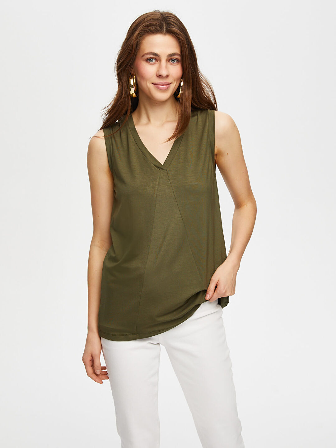 Faik Sönmez Kadın V Yaka Atlet 25YBS25ATL001%96 Viskon %4 Elastan