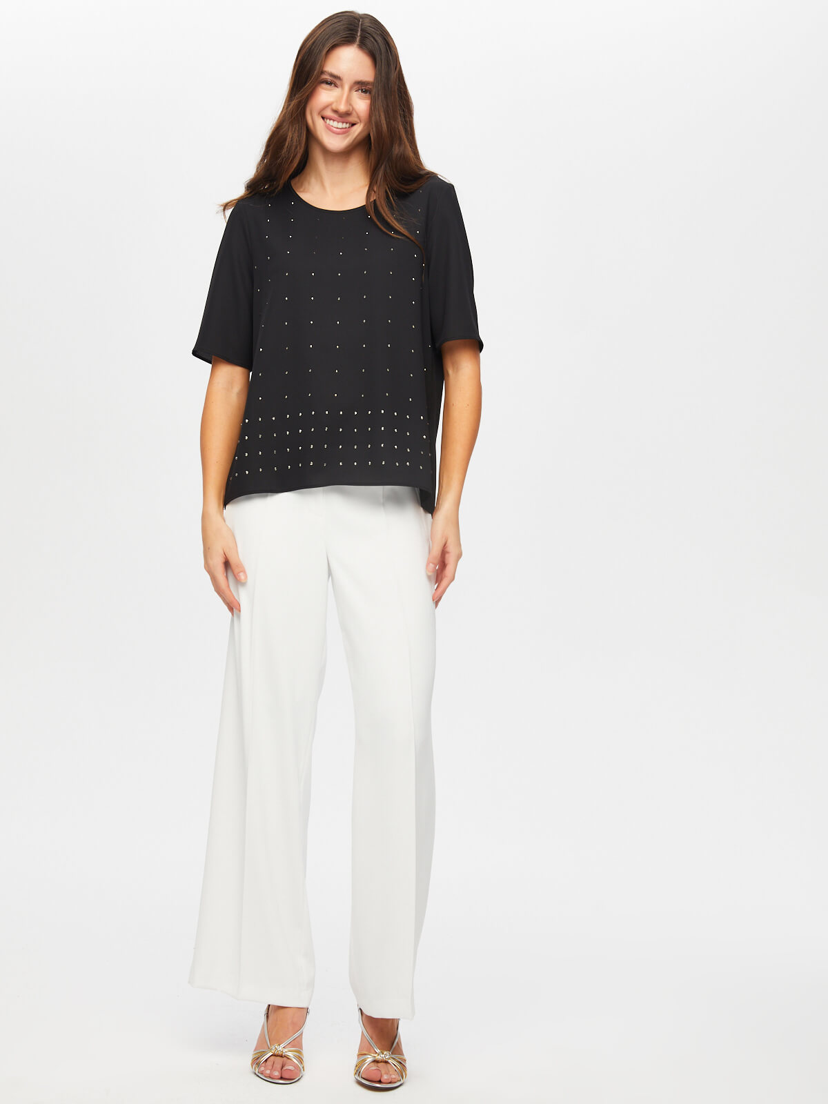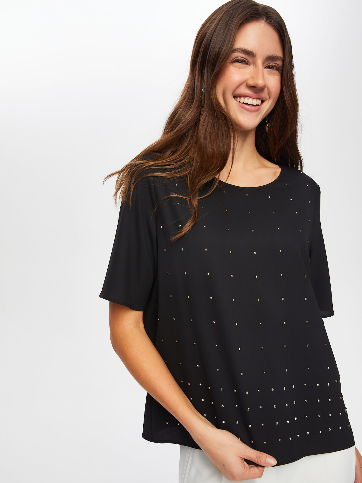 Yuvarlak Yaka Taş Detaylı Kısa Kol Bluz Faik Sönmez%100 Polyester