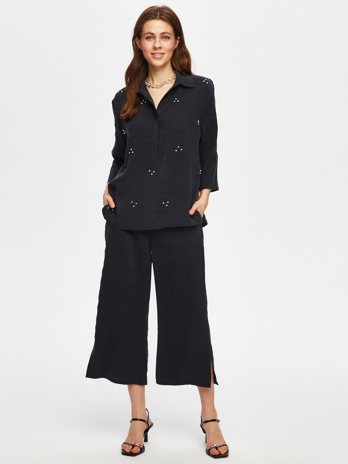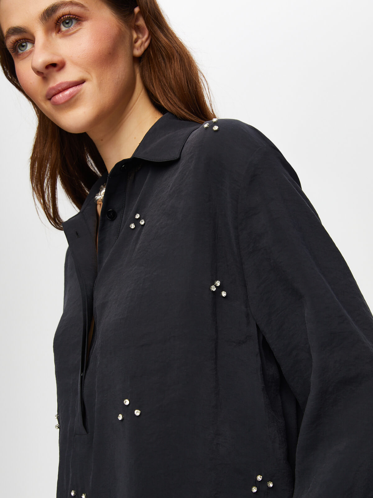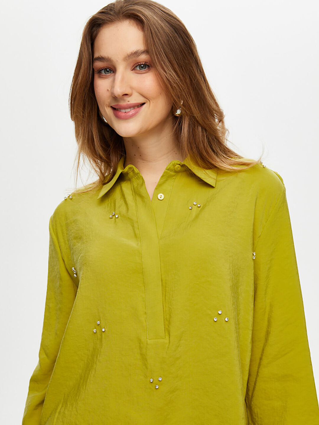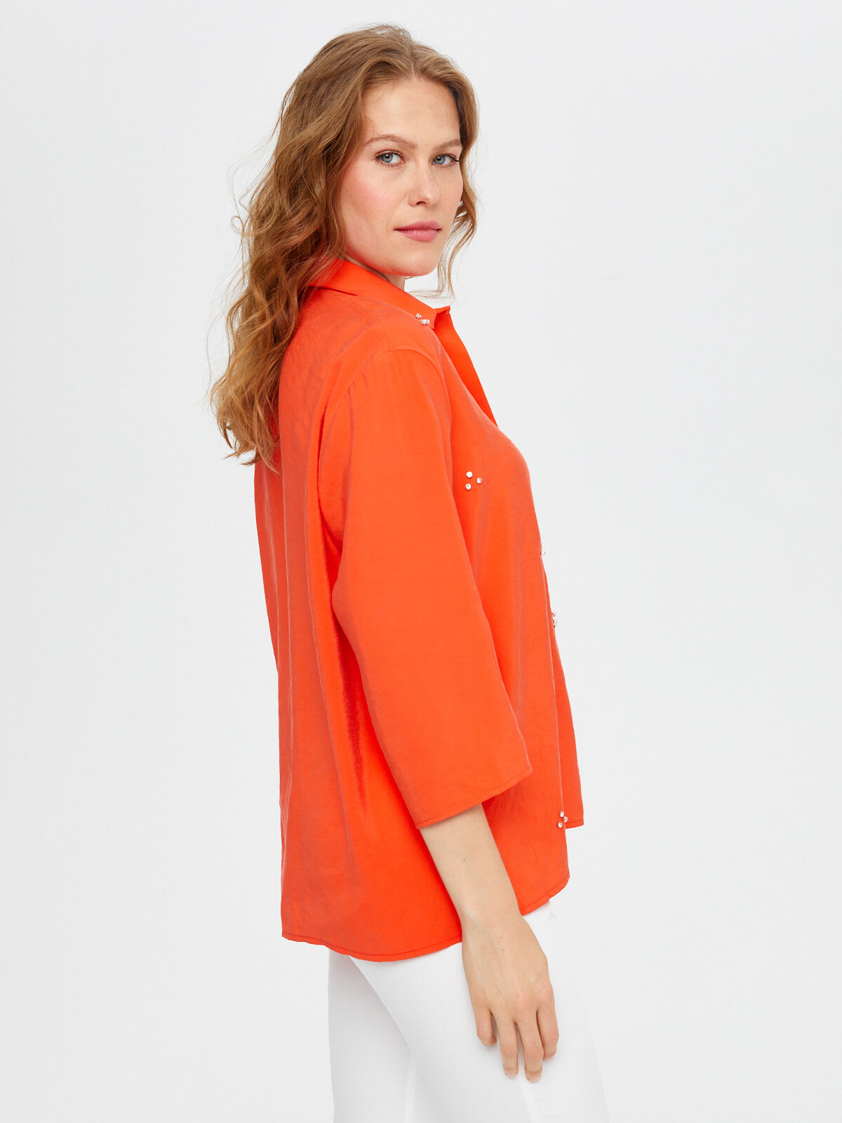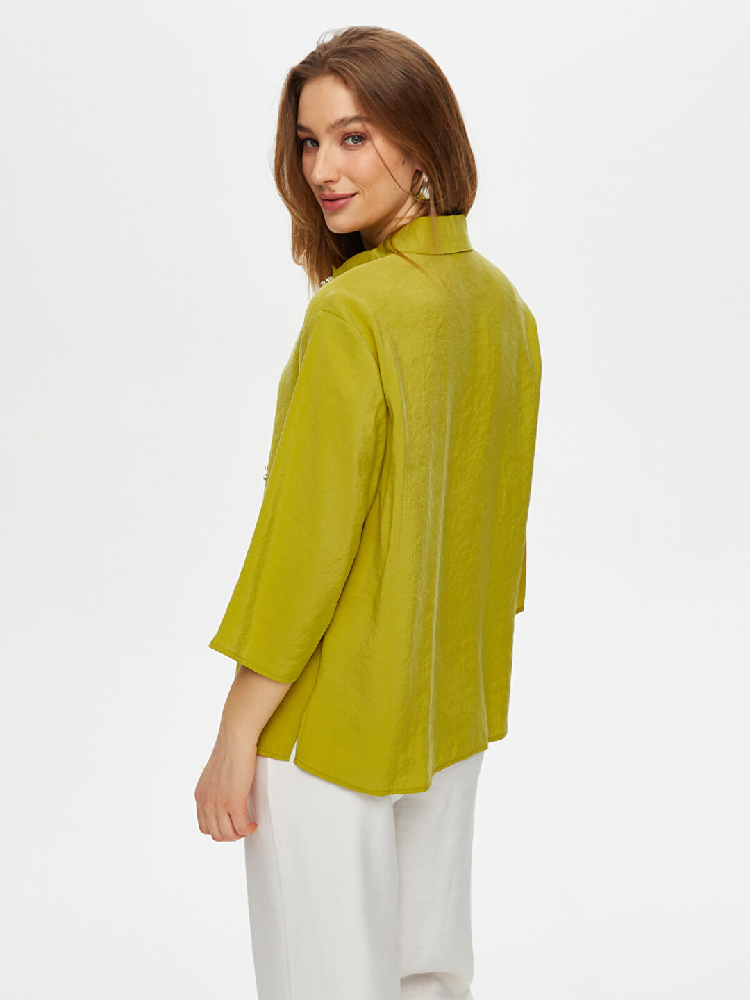 Bluz Yarım Patlı Taş Detaylı 3/4 Kol Modallı Bluz Faik Sönmez