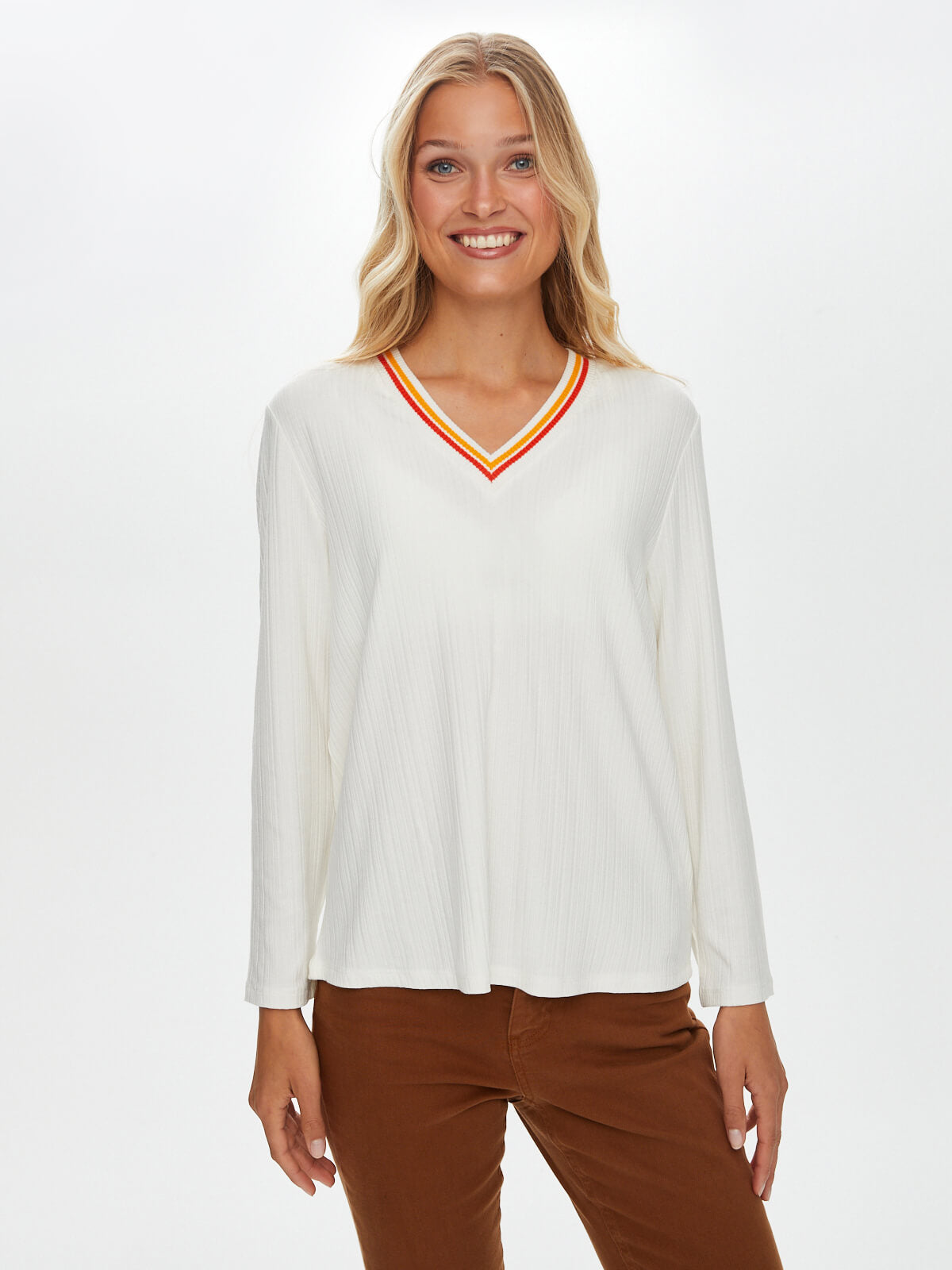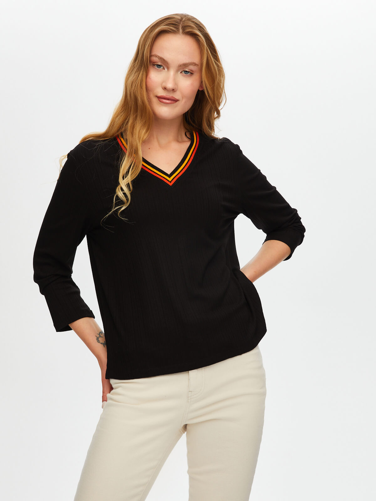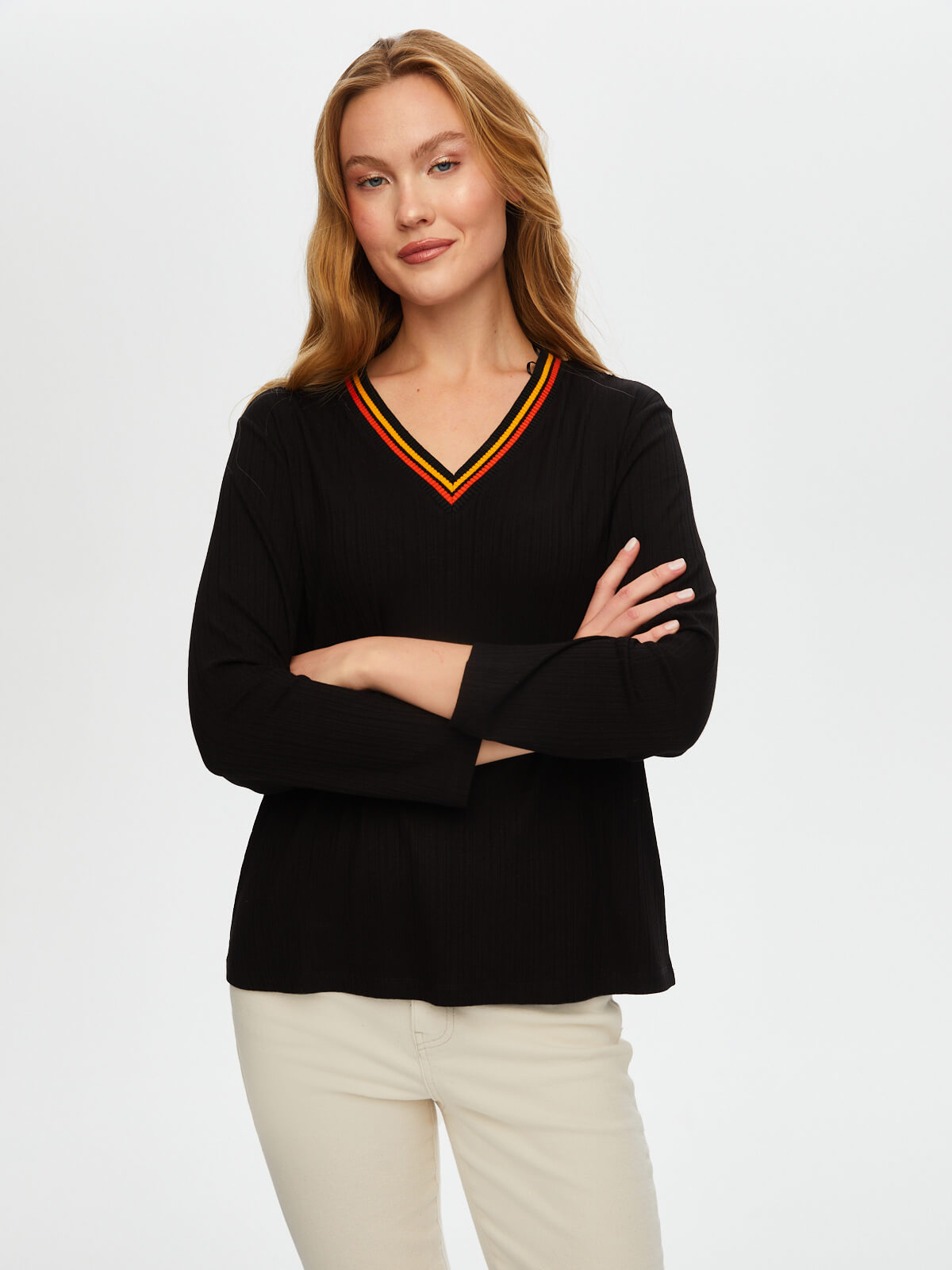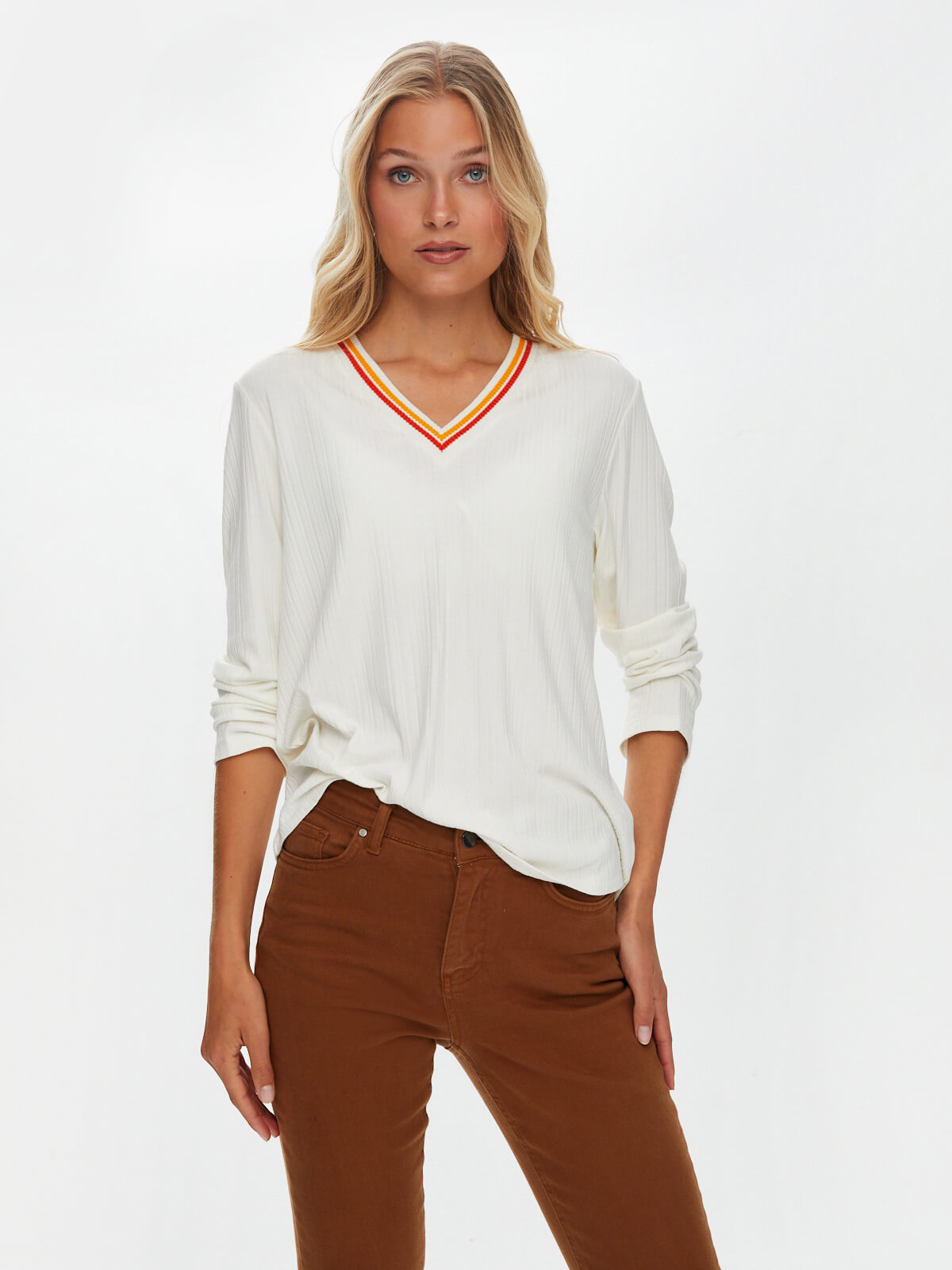 Ürün Adı : Çizgili Triko Yakalı Uzun Kol Kaşkorse Bluz S25BLZ023%95 Viskon %5 Elastan