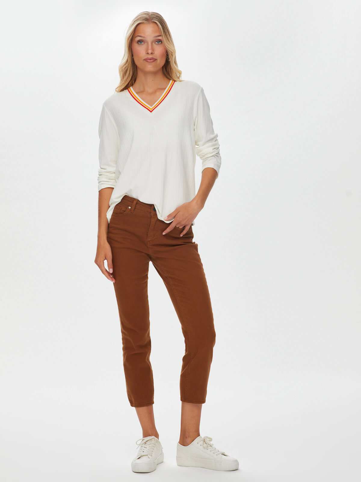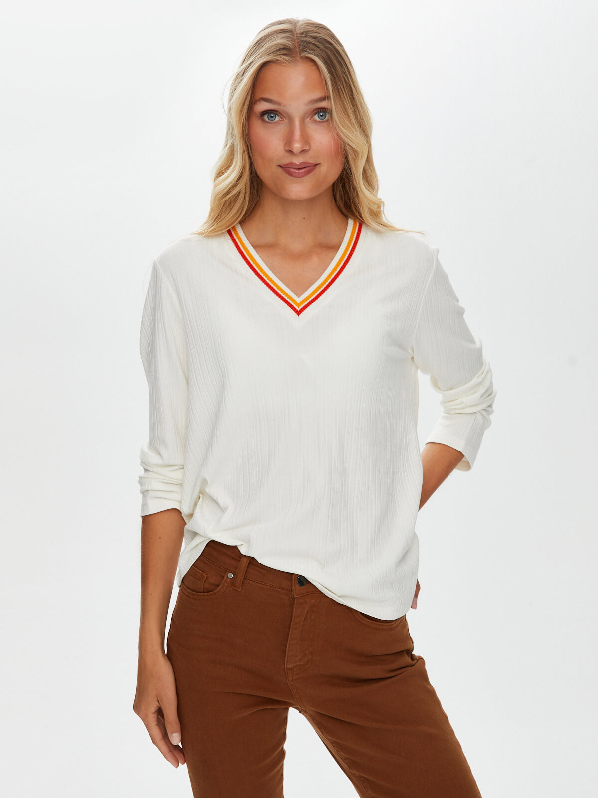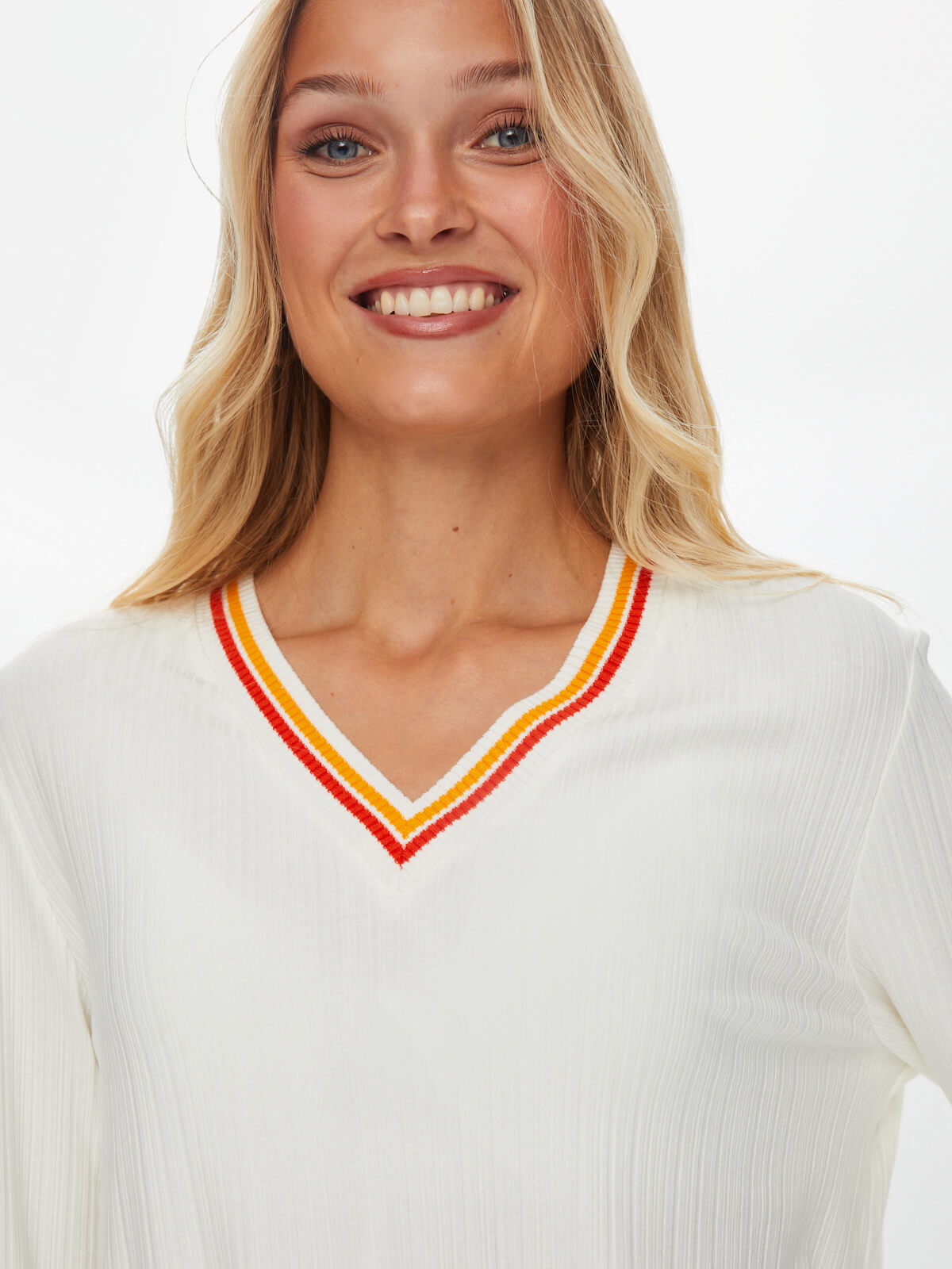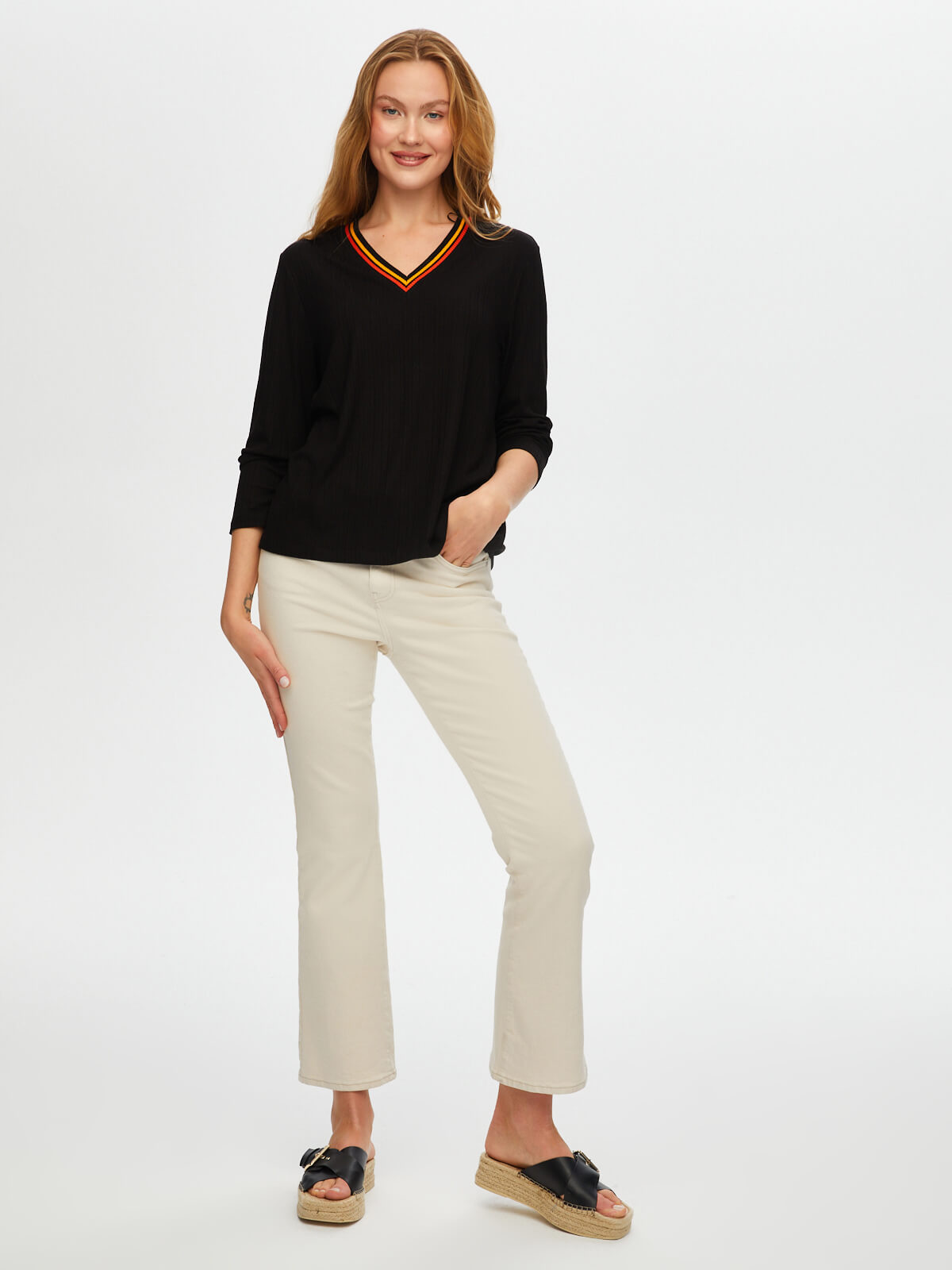 Ürün Adı : Çizgili Triko Yakalı Uzun Kol Kaşkorse Bluz S25BLZ023%95 Viskon %5 Elastan